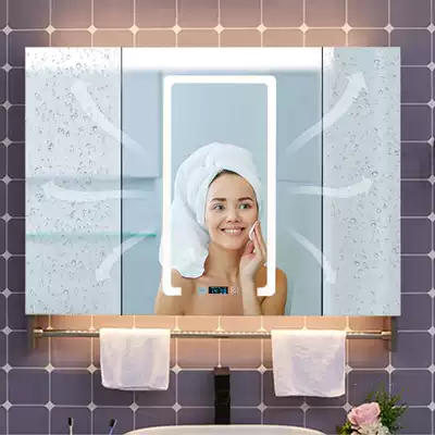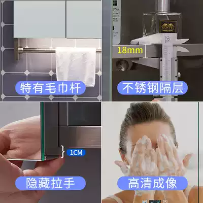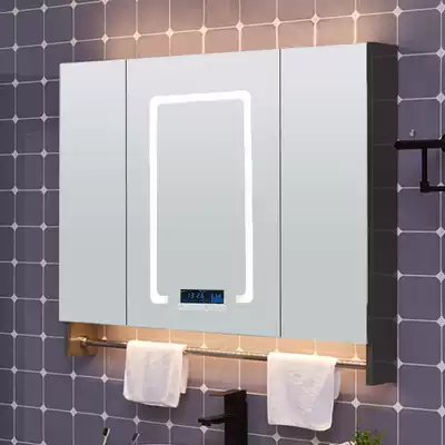 Smart stainless steel mirror cabinet Powder room vanity mirror cabinet Toilet Wall-mounted storage Mirror cabinet with towel bar