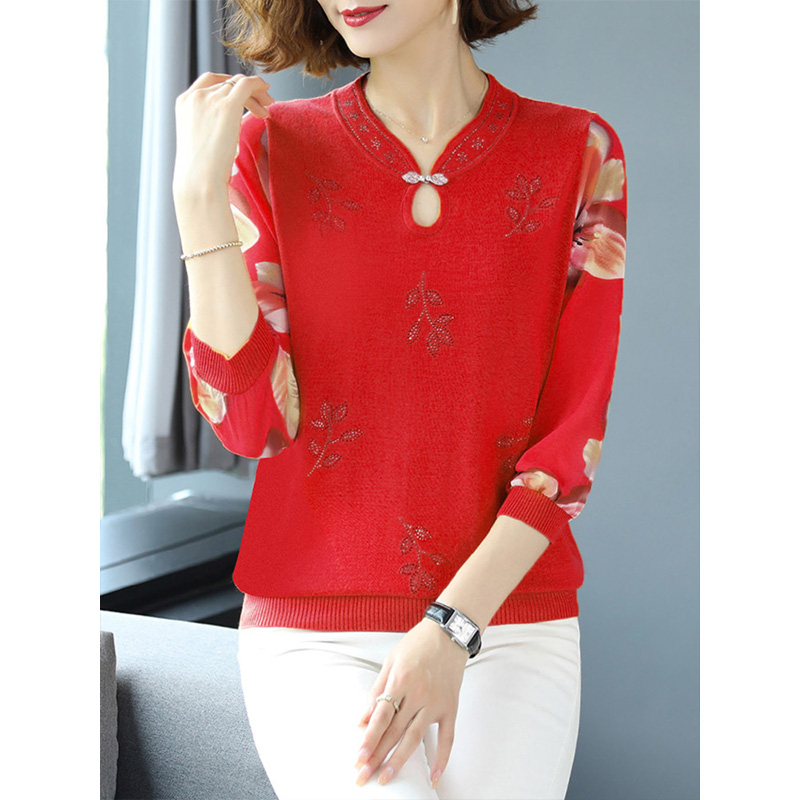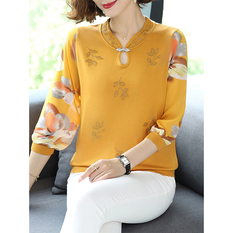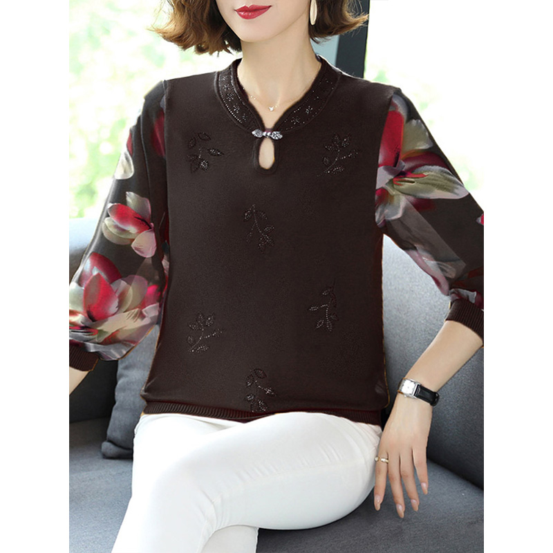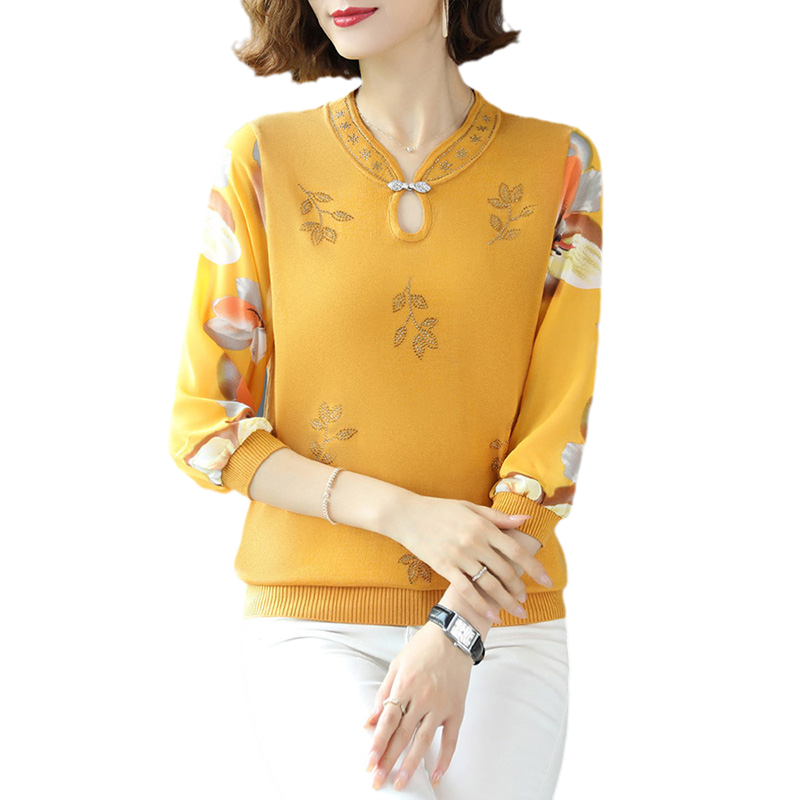 Mother Spring Clothing 2022 New Foreign Pie Middle Aged Woman Spring Autumn Blouse Fashion Long Sleeve T-shirt Beating Bottom Noble Middle Age