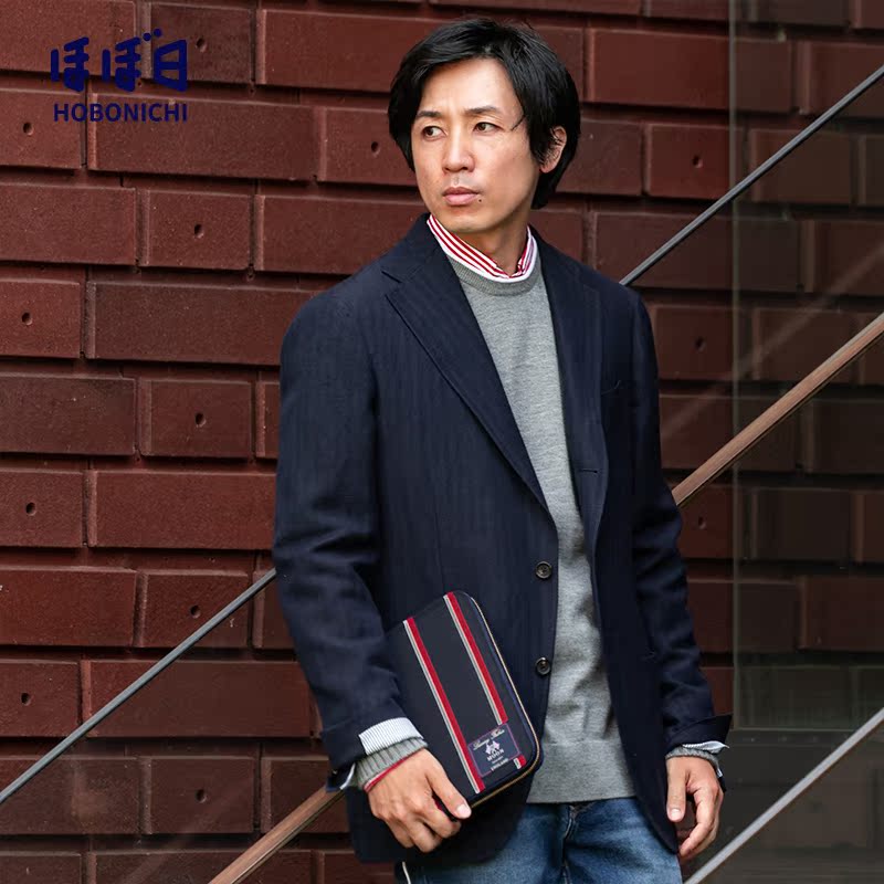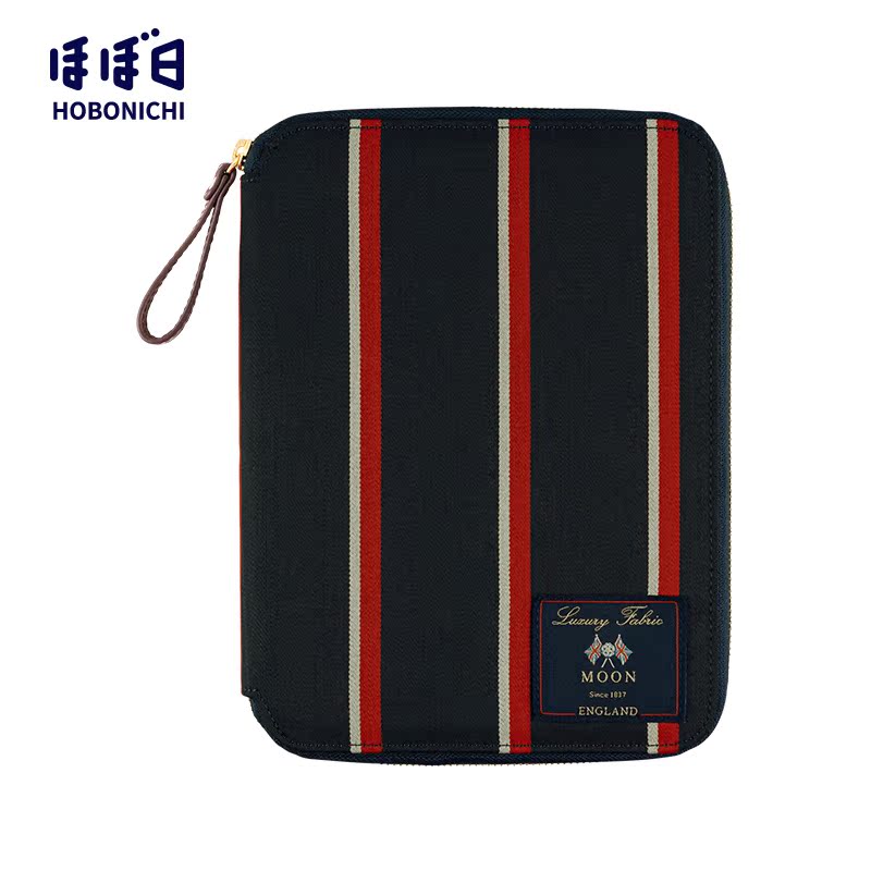 Hobonichi Abraham Moon Sons Inron gentleman fabric (deep blue x red vertical stripes) A5 Handbill seal the leather hobo booksuit