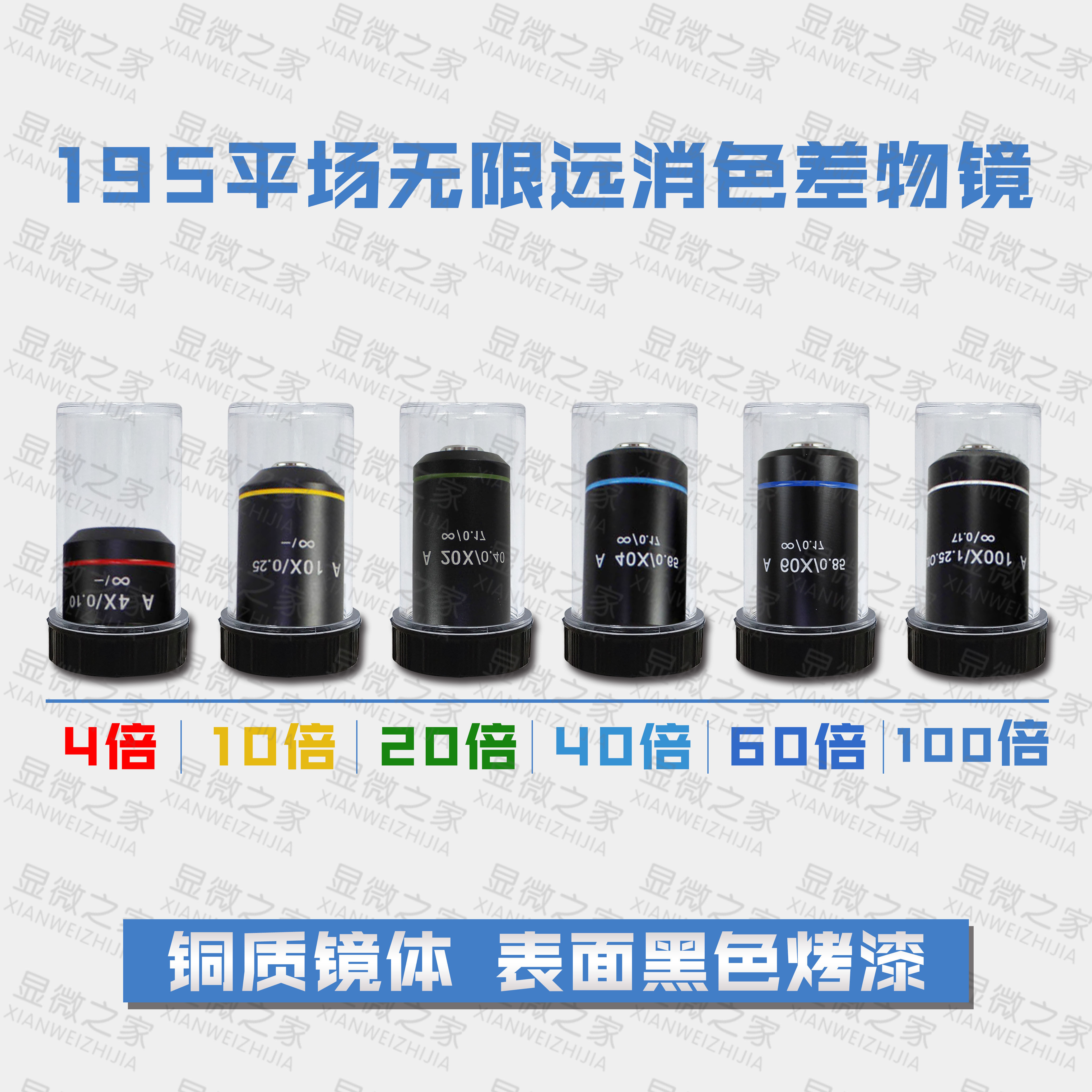 195 microscope objective 4X10X20X40X60X100X flat field infinity achromatic professional objective lens oil mirror