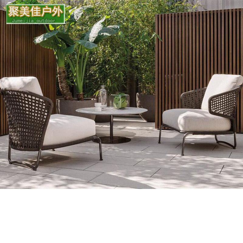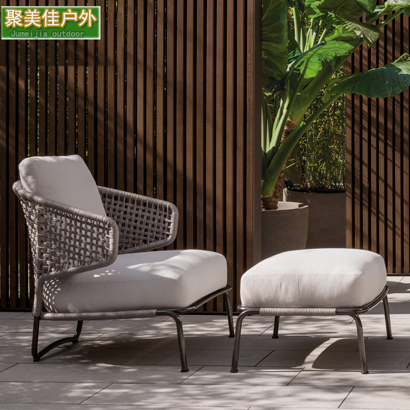Outdoor rope sofa courtyard open-air balcony chair model room designer waterproof sunscreen leisure rattan furniture