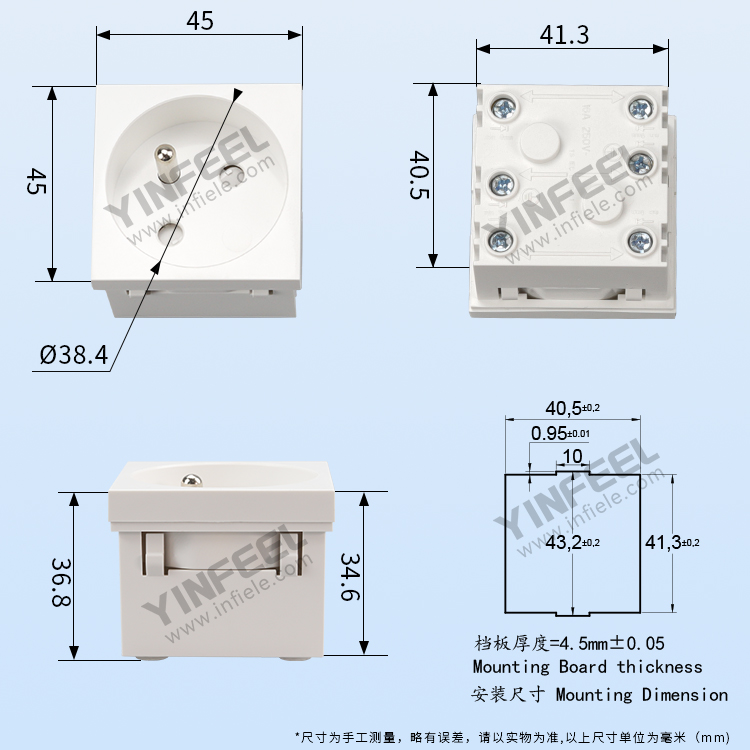 45*45 French cabinet module socket audio power French German embedded bevel 45 degree socket