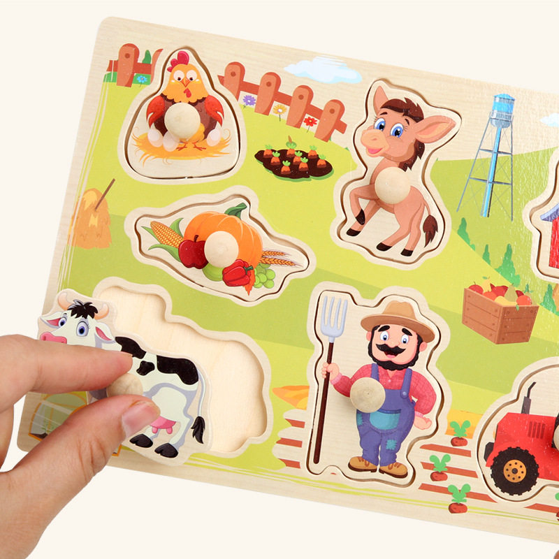 Kindergarten Children Early Education Wooden Hand Grip Plate Xinjiang Animals Wood Jigsaw Puzzle Jigsaw Puzzle building blocks Toys