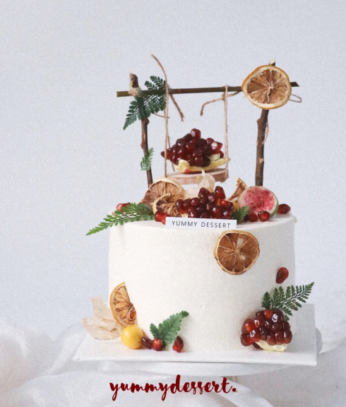 Simply small freshly birthday cake decorated fruit and vegetables dry figs dry leisure fruit dry grapefruit lemon dry