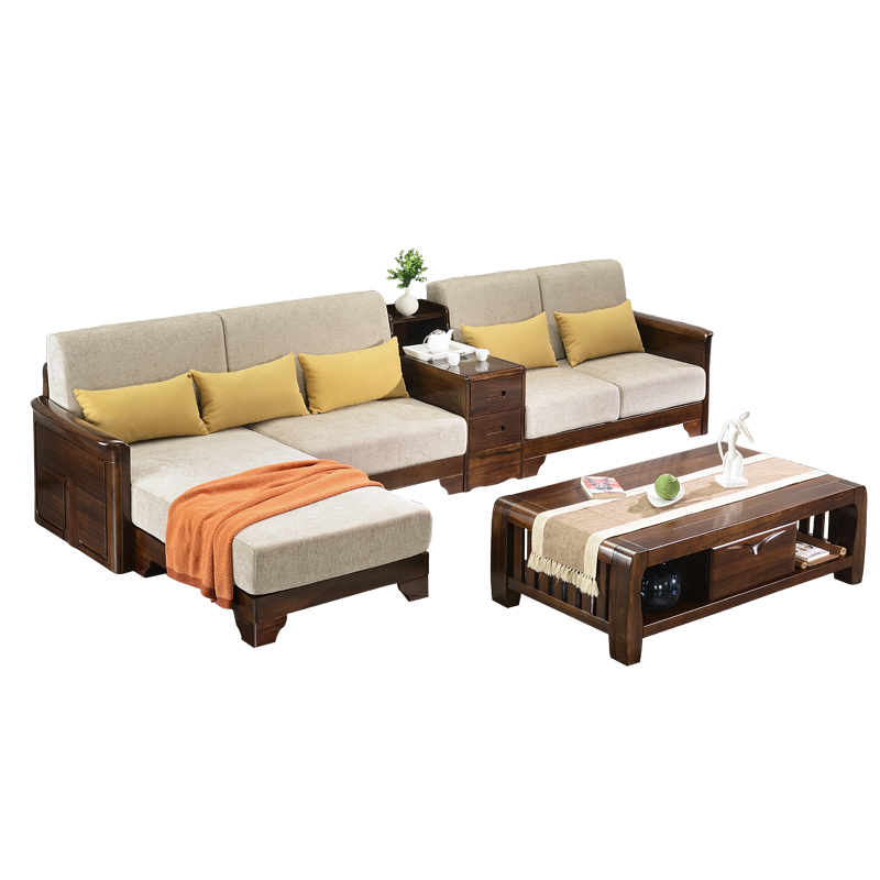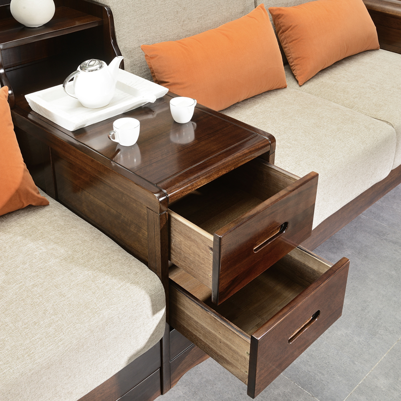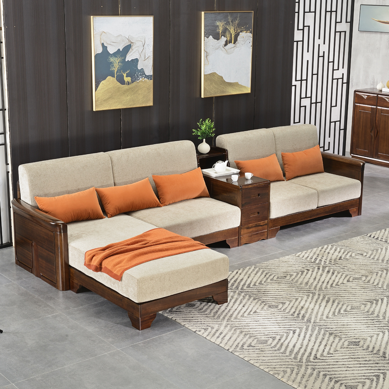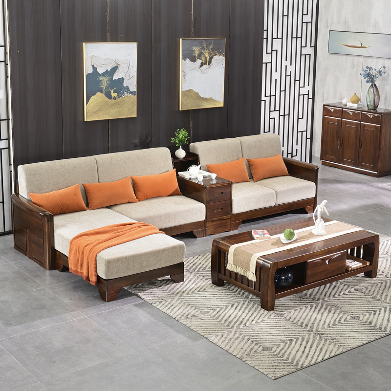 New Chinese style black walnut solid wood corner concubine sofa combination modern minimalist three-person small apartment living room
