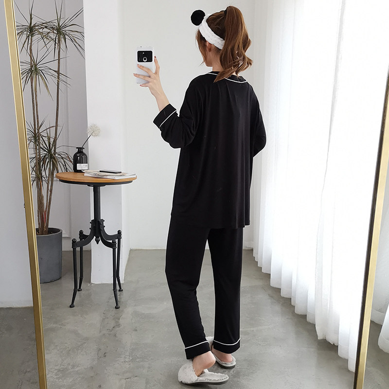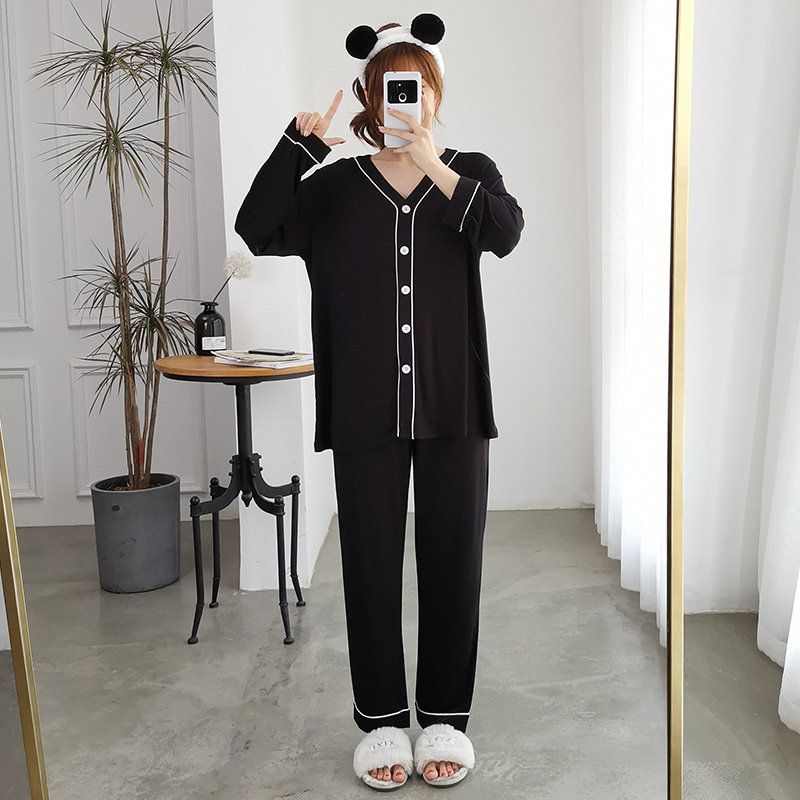 Thin section modal pajama pants set female spring and autumn long-sleeved trousers loose home clothes cardigan summer large size fat MM