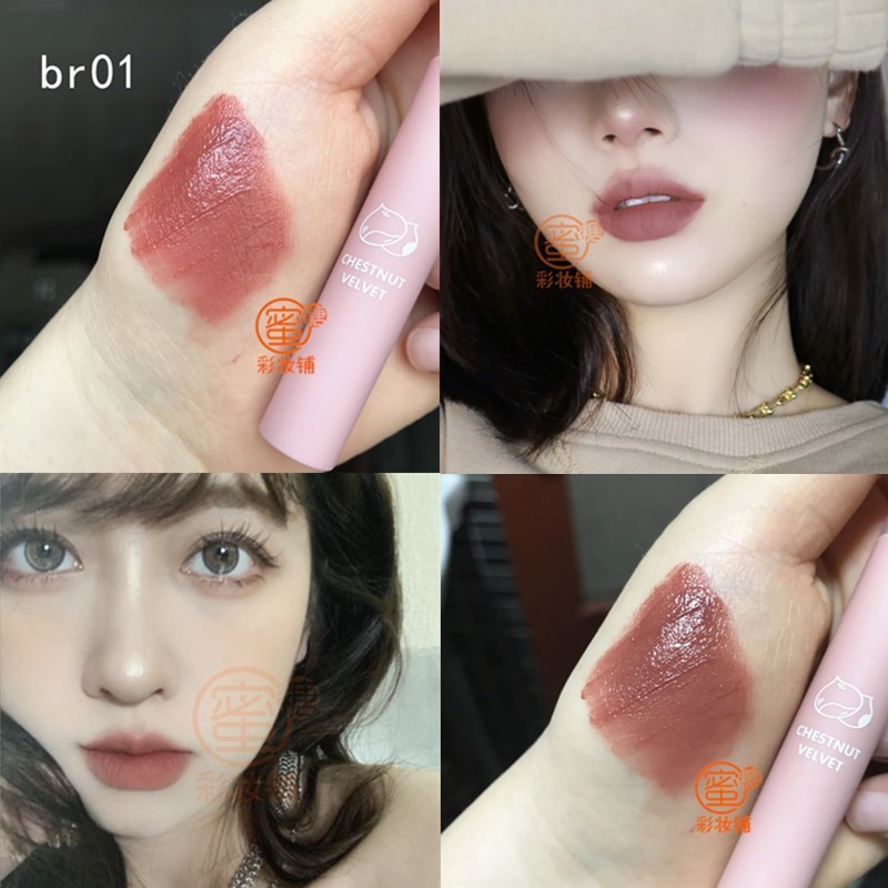 Caramel cinnamon iced milk tea mirror air lip mud lip glaze glass lip non-stick cup non-fading lipstick female student