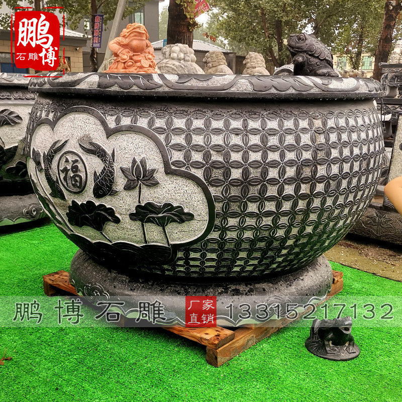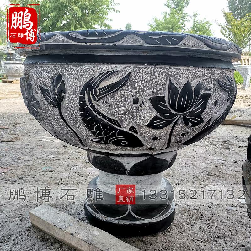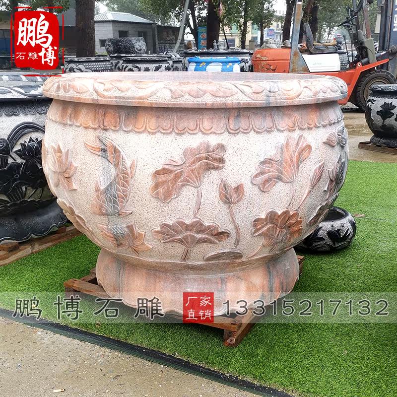 Stone carved fish tank stone flowerpot cylinder flowerfish basin courtyard in courtyard sink fish recruitment fixture