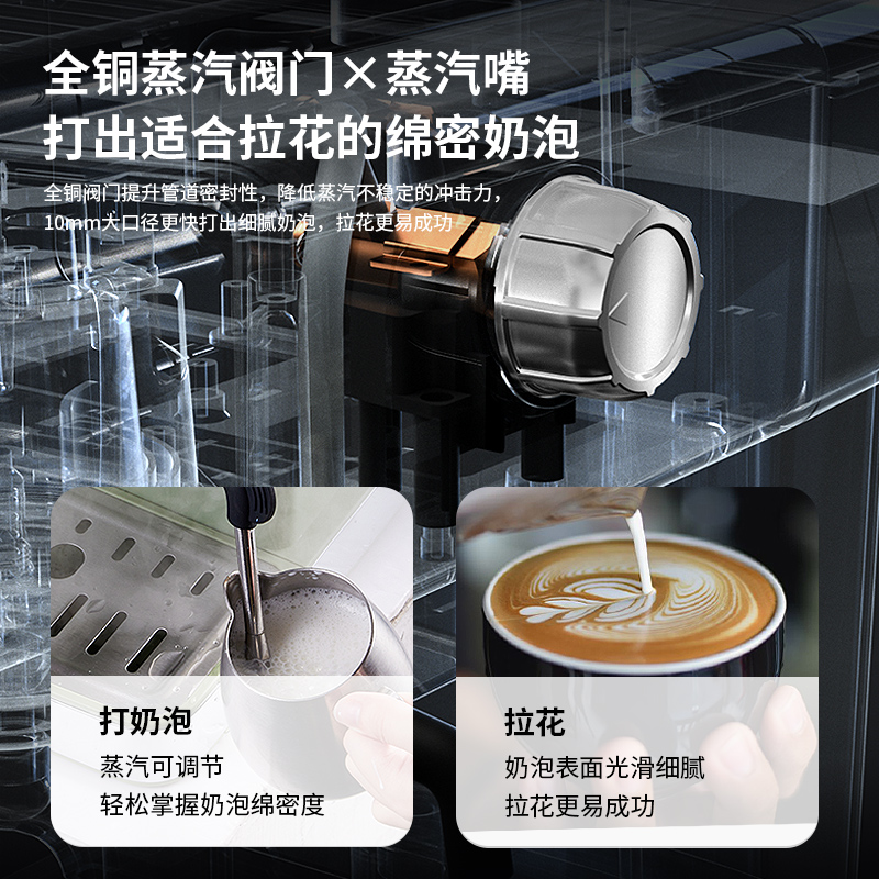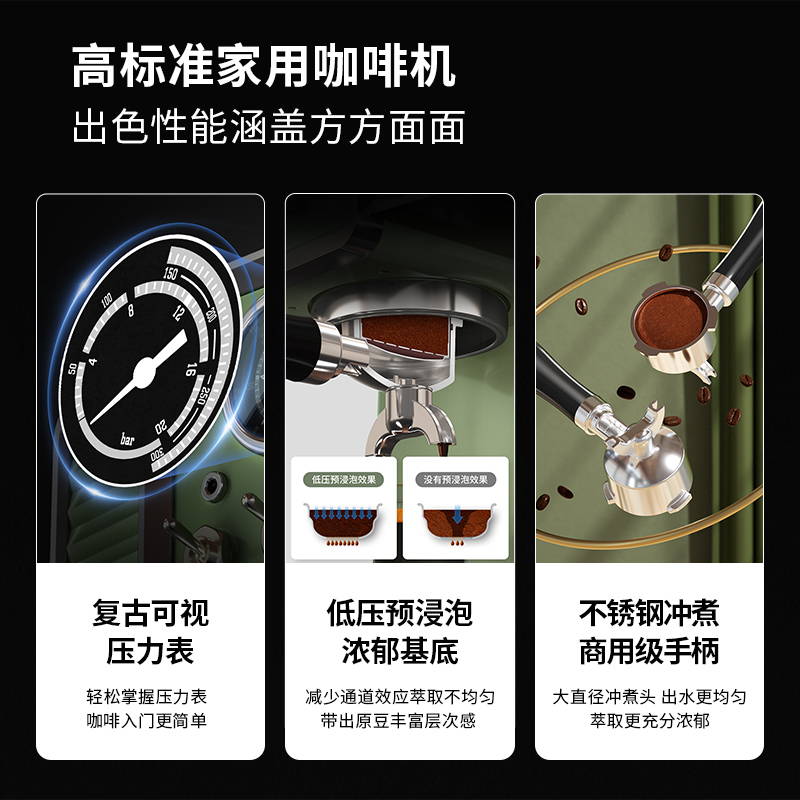 Parkros PET3690 Vintage Espresso Machine Home Small Semi-Automatic 15 Bar SteamEd Milk Foam