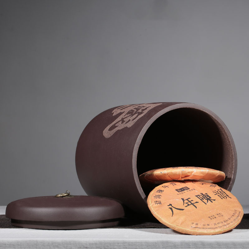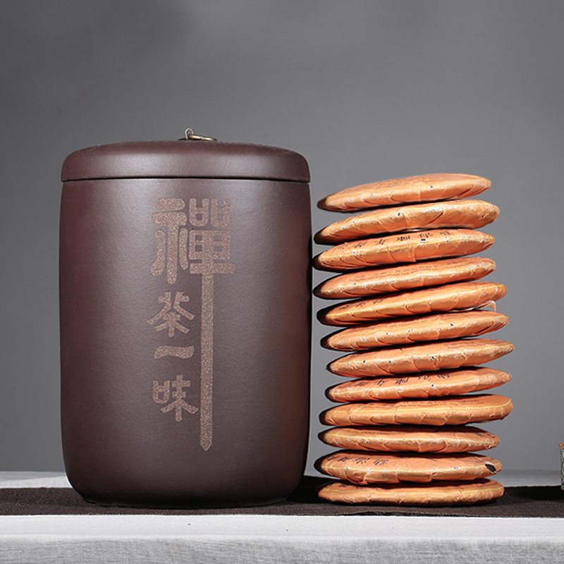 Yixing Purple sand large tea jar Purple Sand jar Pu'er tea jar Ceramic sealed storage tea jar Downhill Purple Mud tea jar