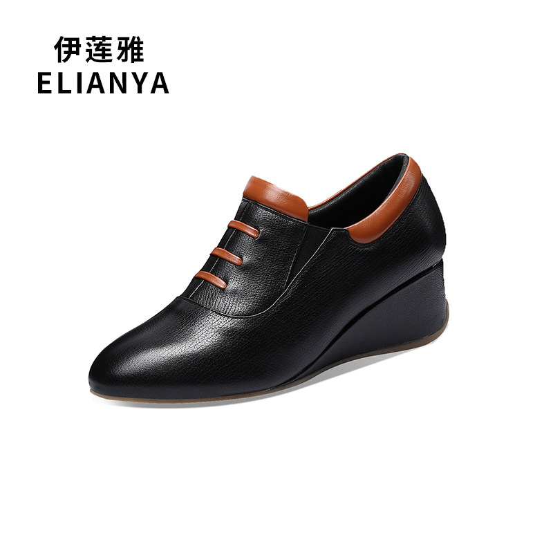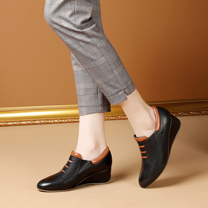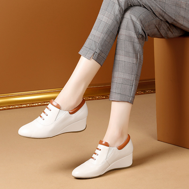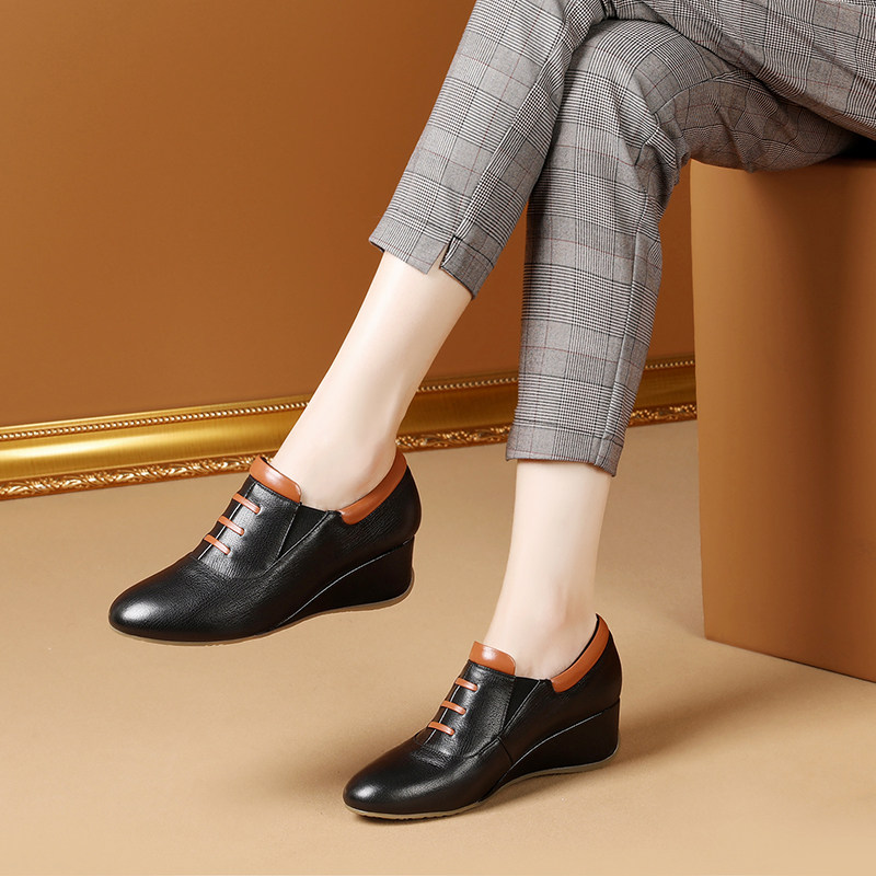 Autumn new comfortable mother shoes leather large size shoes color matching deep mouth single shoes ladies medium heel shoes all-match ankle shoes
