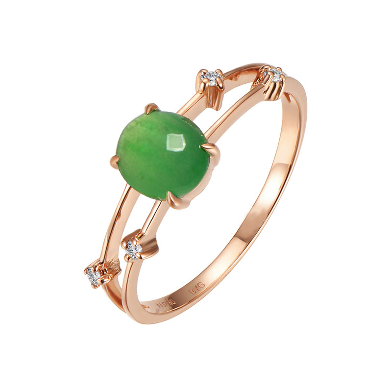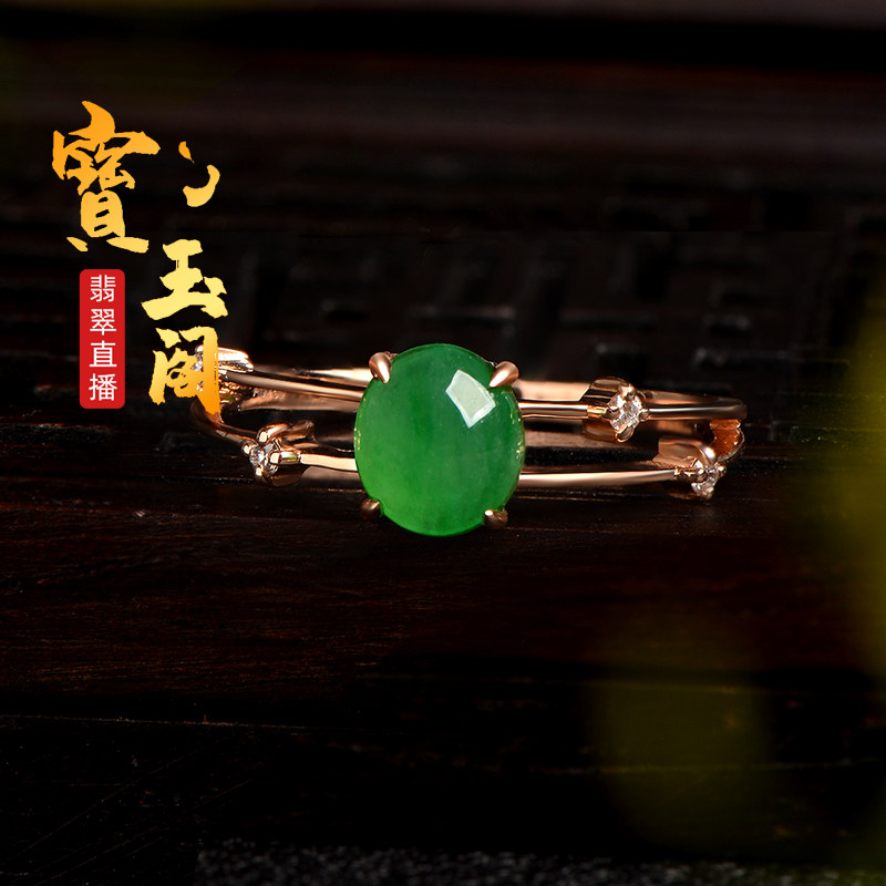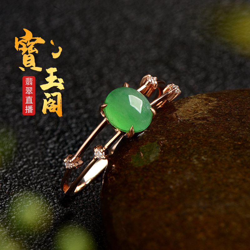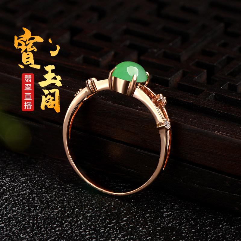 Myanmar Yang Green Egg Noodles Ice Seed Emerald Ring Female Natural A Cargo Jade Ring Ring 18K Gold Companion Drill Inlaid Finished Product