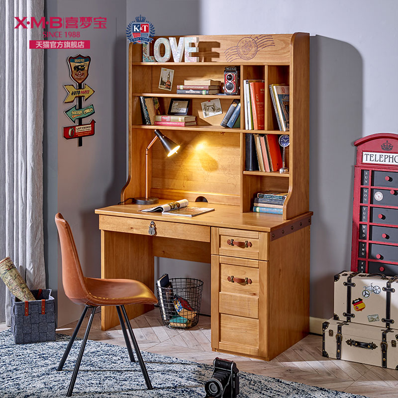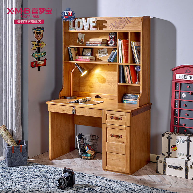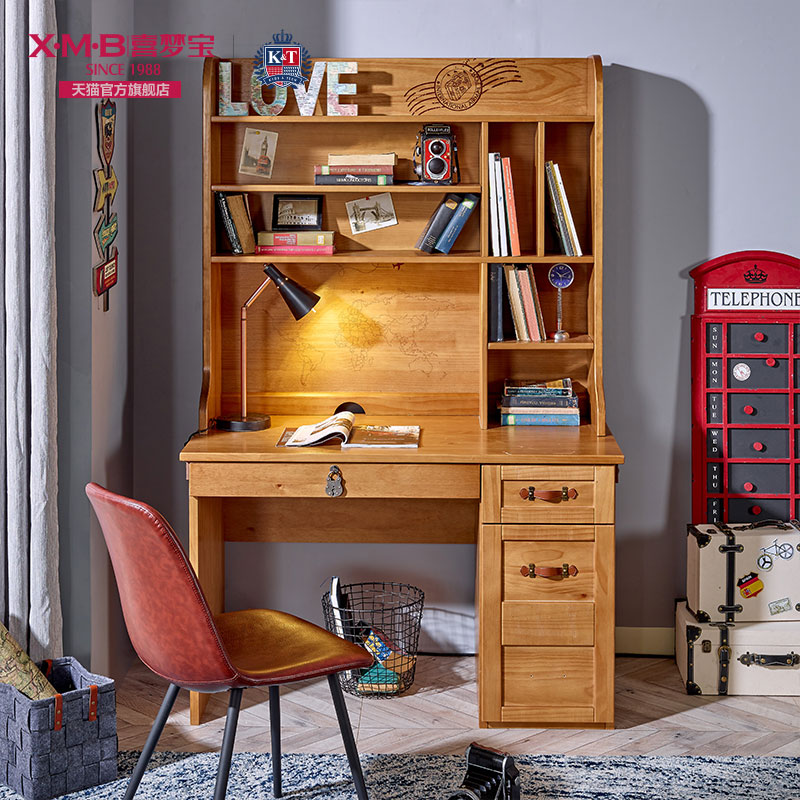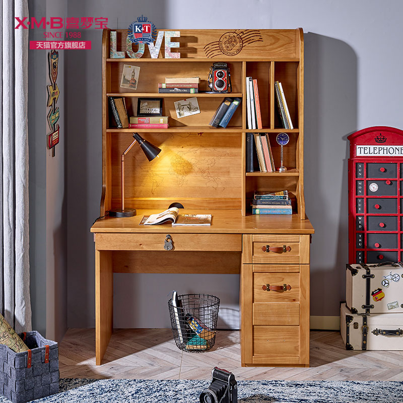 Happy Dream Treasure Full Wood Children Desk Bookshelf American Combined Desk Curry Pine Wood Desk Globe Travel