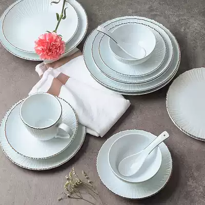 Multi-house Ailian said that the dish set household tableware atmospheric Chinese ceramic simple combination dish dishwasher spoon flat plate