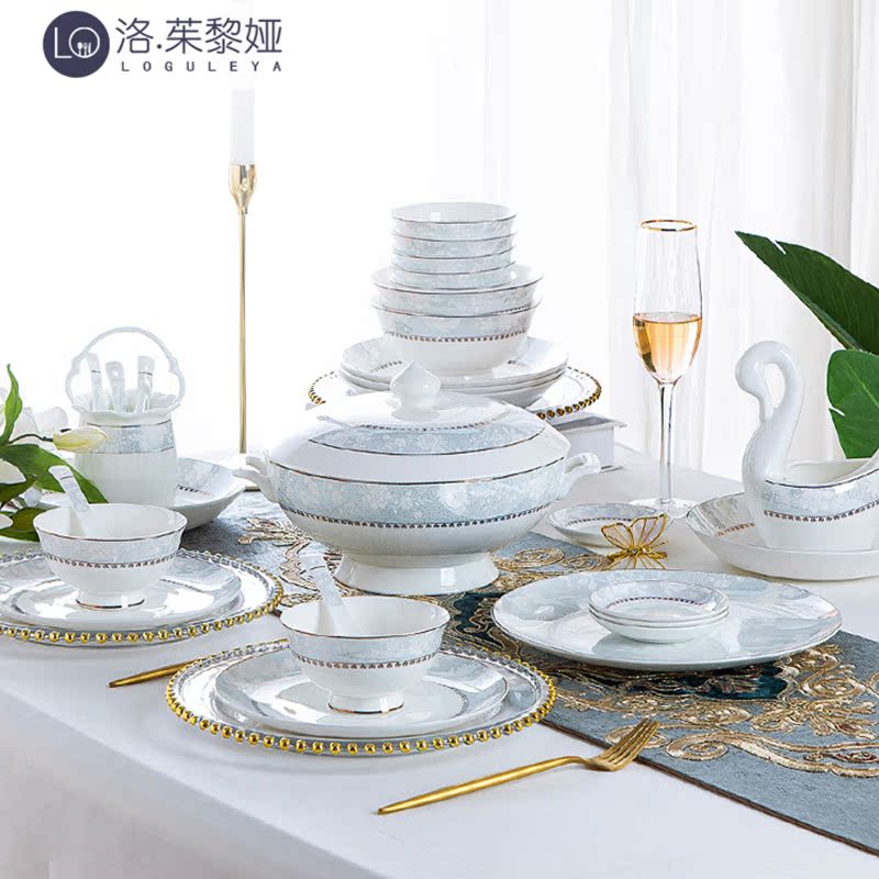 LO GULEYA dish set Household Nordic simple light luxury tableware ceramic combination Jingdezhen bone china dishes