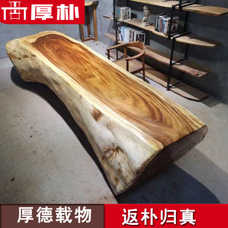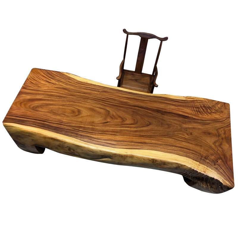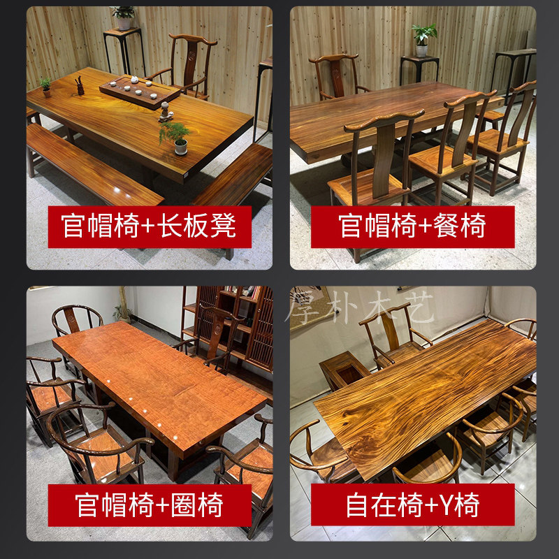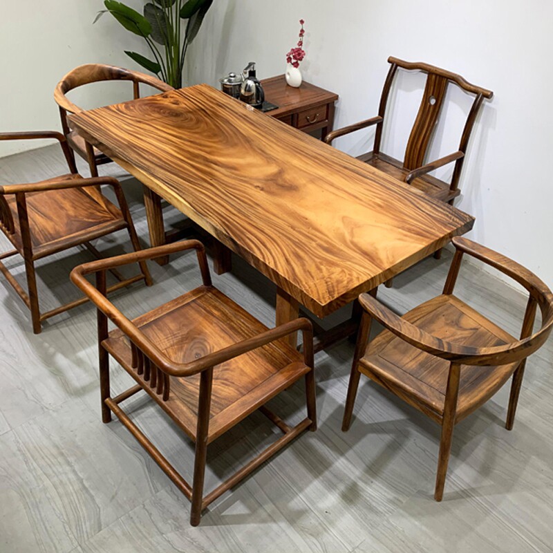 Walnut large board table and chair combination solid wood tea table tea table log Bahuahuali desktop 1 8 meters complete set 6 8CM