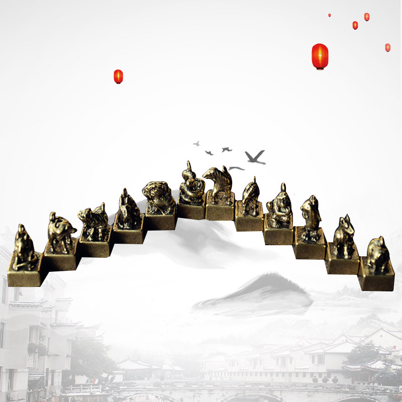 Engraved seal zodiac all copper signature seal solid brass chapter custom calligraphy and painting seal engraved bronze name seal