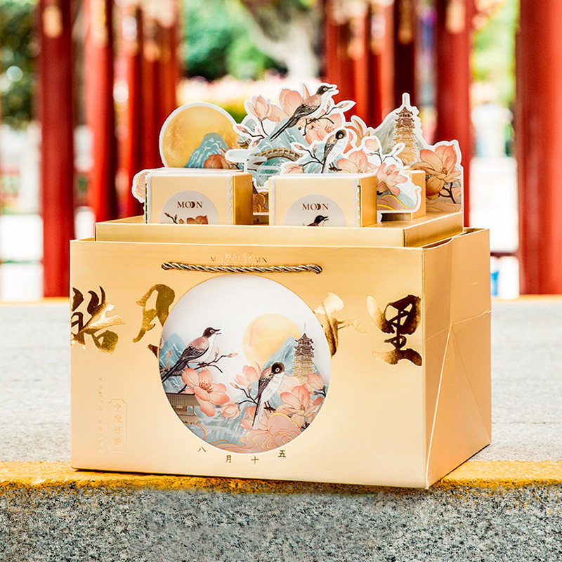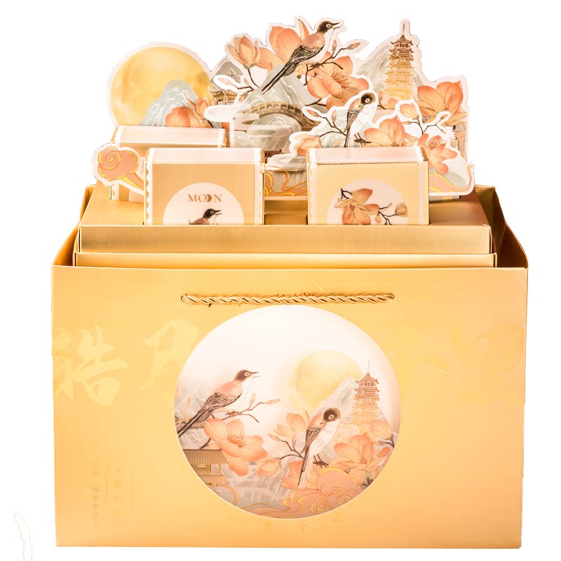 Solid Pink Golden Flower Bird Gift Box (baking packaging)