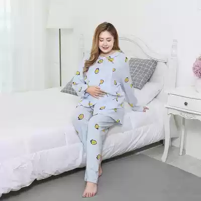 Confinement clothes Spring and Autumn clothes Thin postpartum breastfeeding pajamas Maternal breastfeeding special plus fat plus size 200 kg 300 kg suit