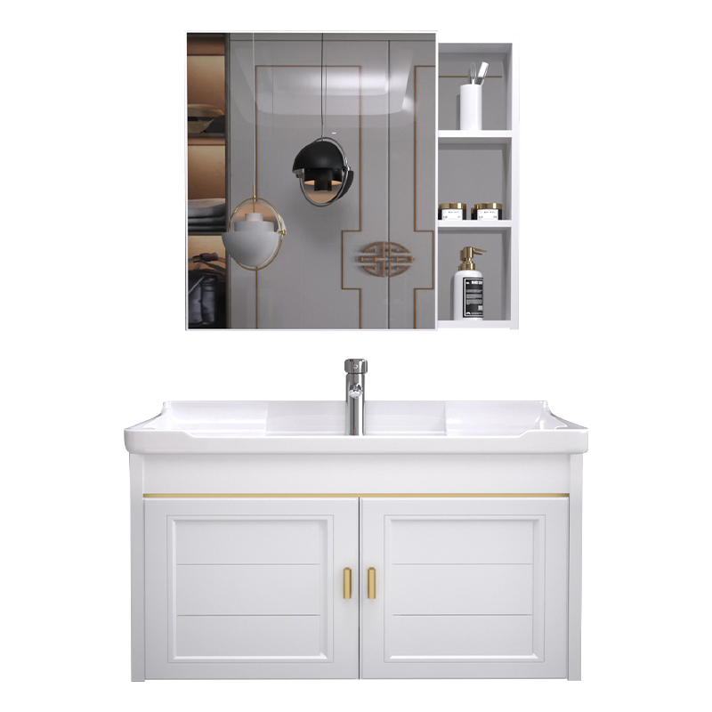 Space Aluminum Bath Room Cabinet Hanging Wall Modern Minimalist Washbasin Cabinet Makeup Room Small Family Type Wash wash Wash Hands counter Washbasin Mirror Cabinet