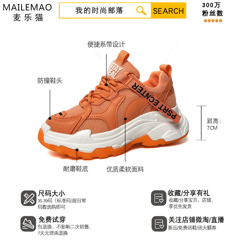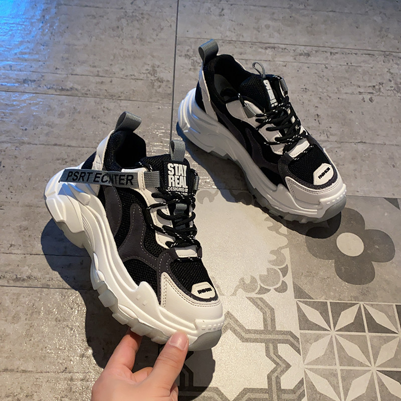 Net Red Explicit Feet Little Old Daddy Shoes Women Ins Tide 2021 New Spring Overfire 100 Hitch Bottom White Sports Shoes