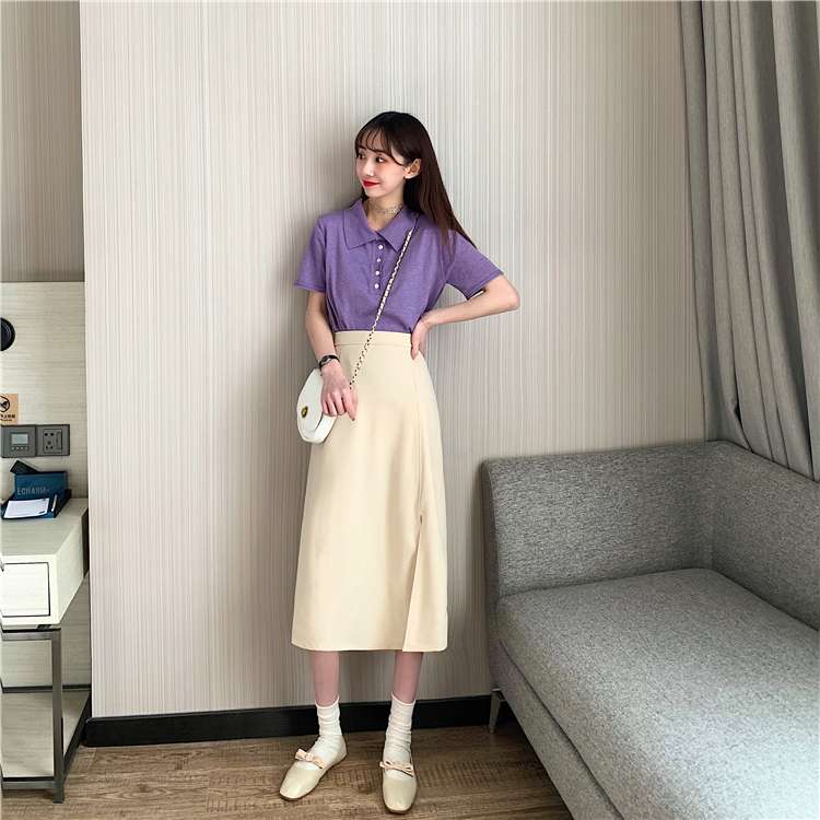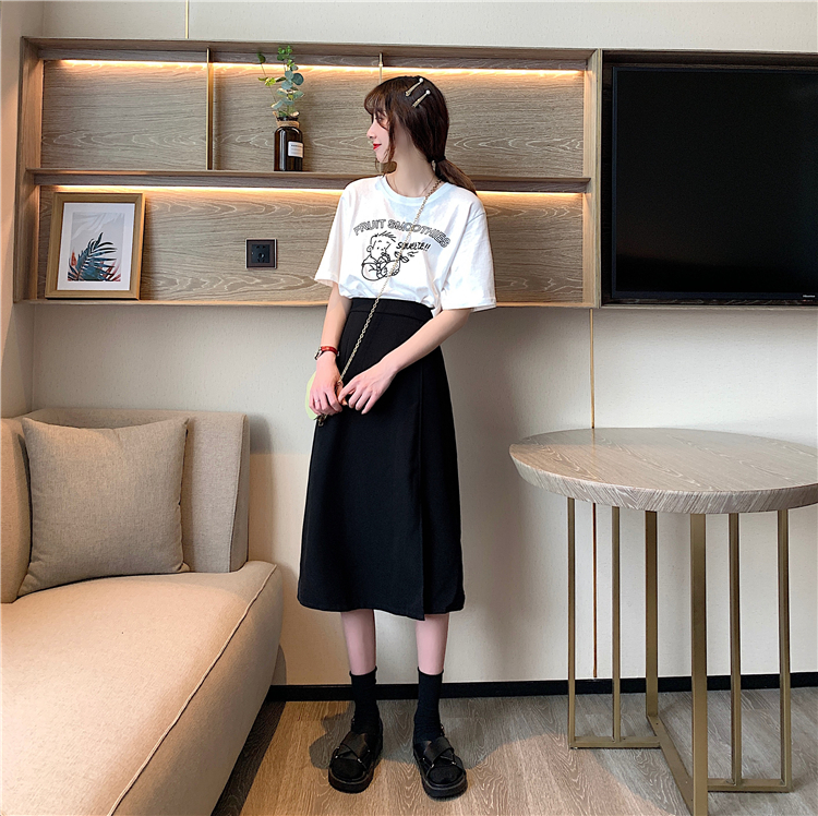 Small 145 medium - long skirt 150cm tall 155 wearing side - side fork high - waist skirt