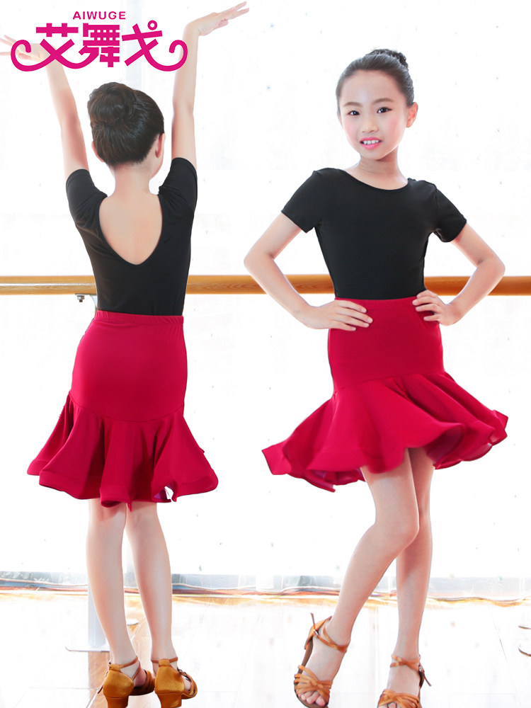 Children's Latin Dance Costume Set Summer Latin Dance Skirt Girls Short-sleeved Dance Clothes Practice Clothes Latin Performance Costumes