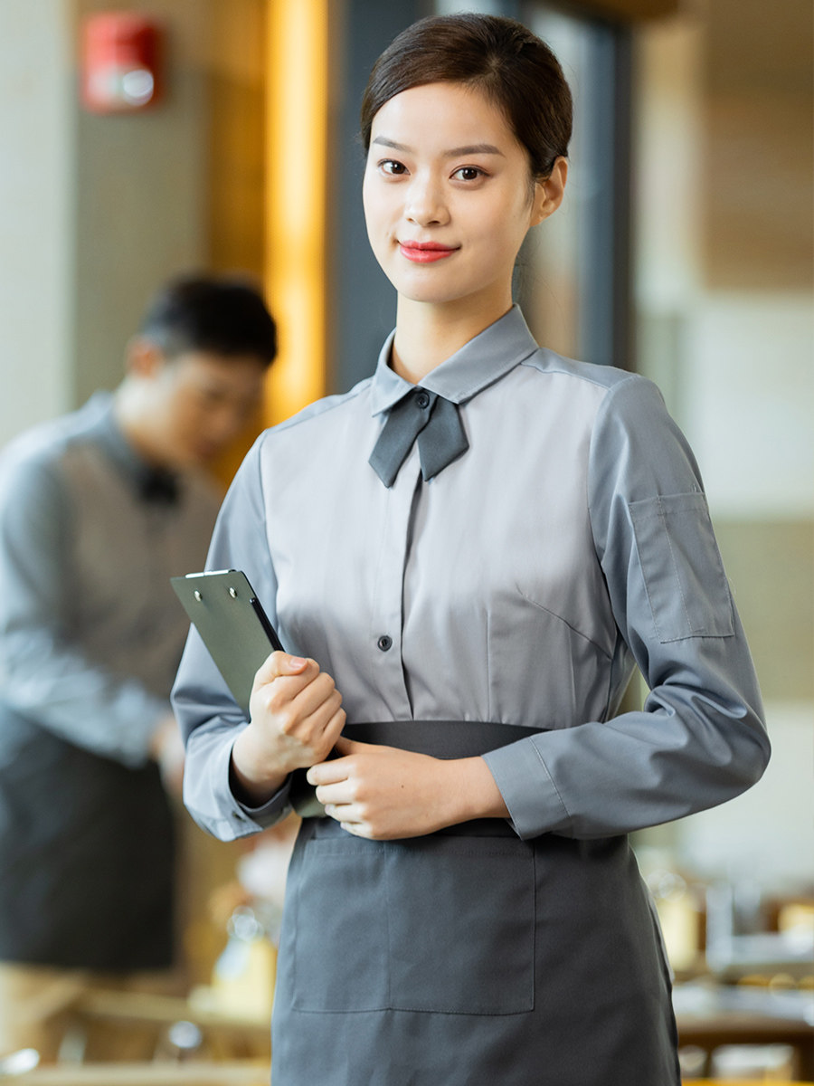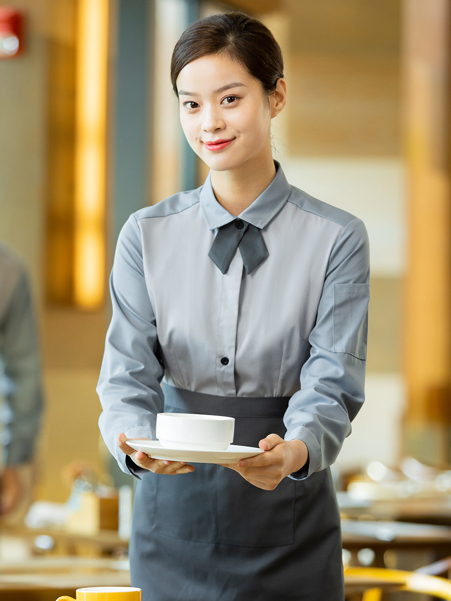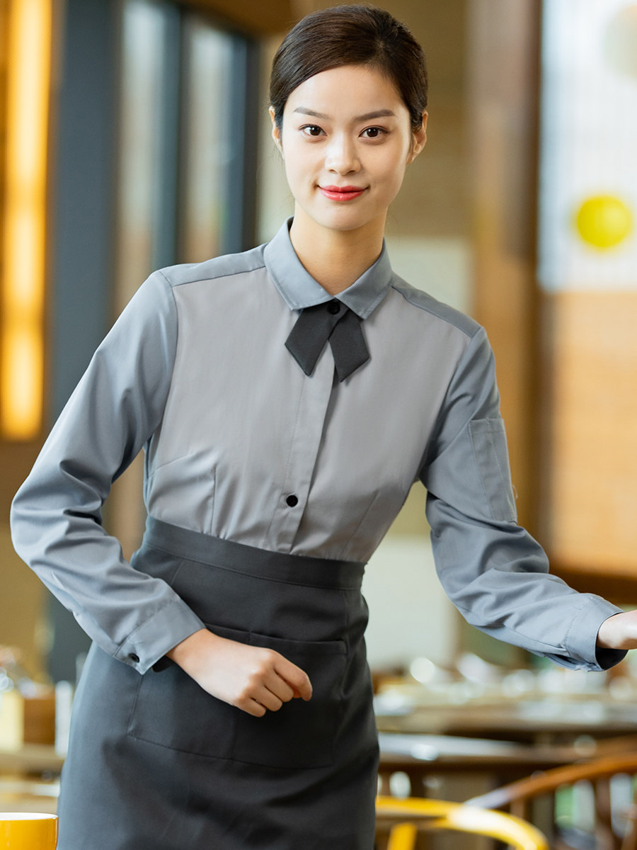 Rear Implication Restaurant Uniform Woman Long Sleeve Cake Baking Milk Tea Shop Cafeteria Catering Attendant Clothing Spring Autumn Clothing