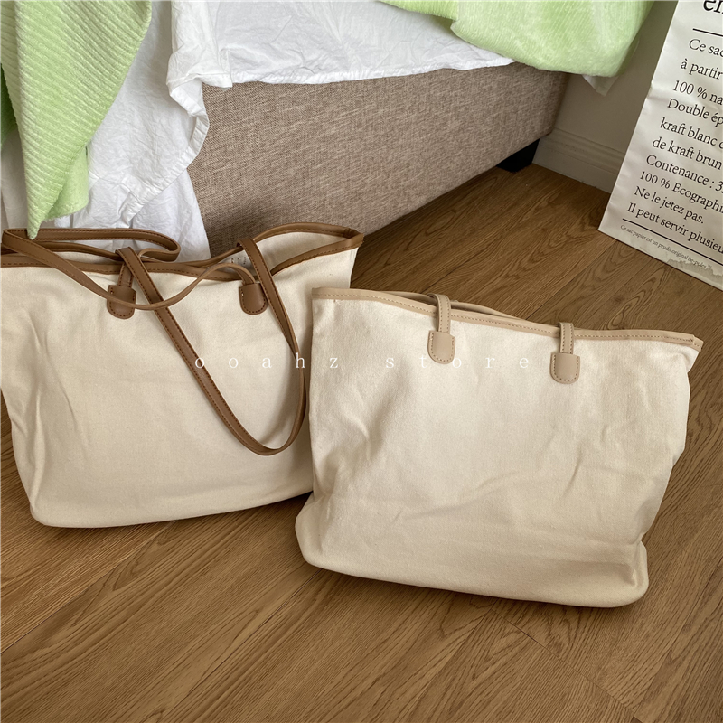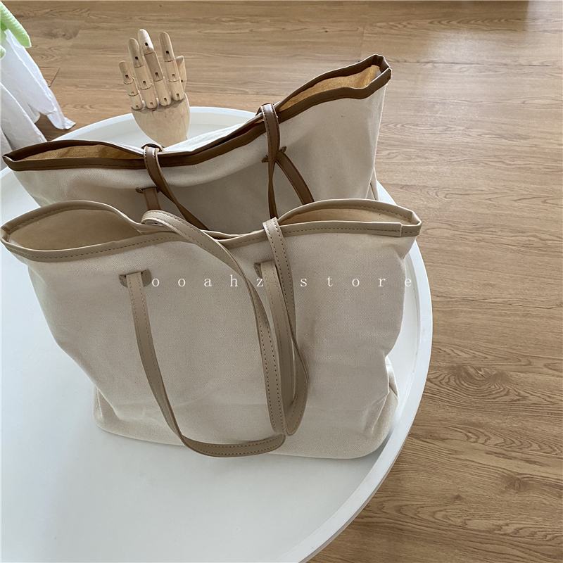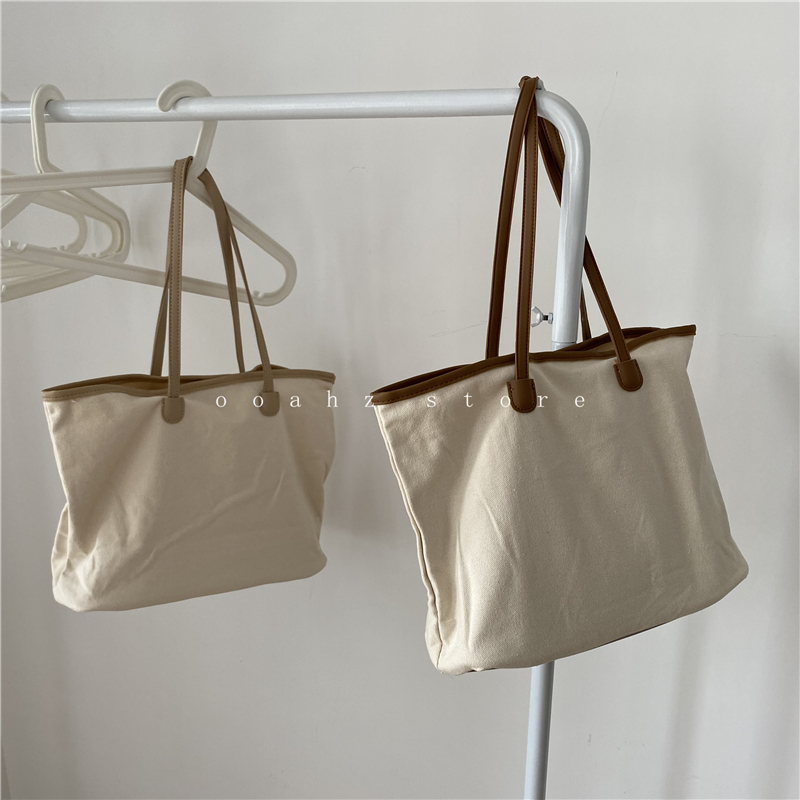 ooahz homemade cream rice apricot ~ large capacity canvas bag student class bag shoulder handbag female Korean ins