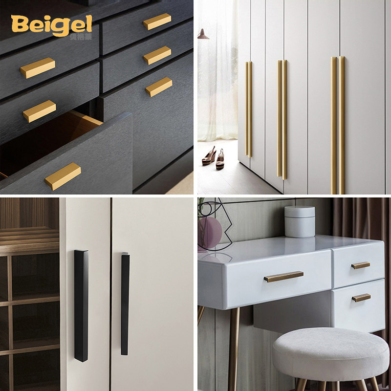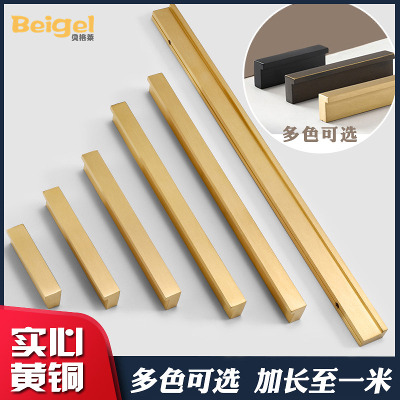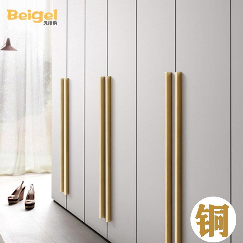 Bergley brass wardrobe cabinet door handle overall cabinet pure copper handle Modern simple brown 7-shaped drawer 1 meter