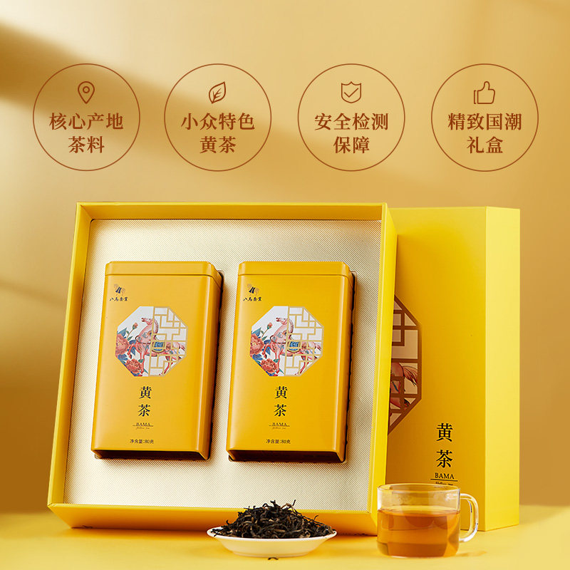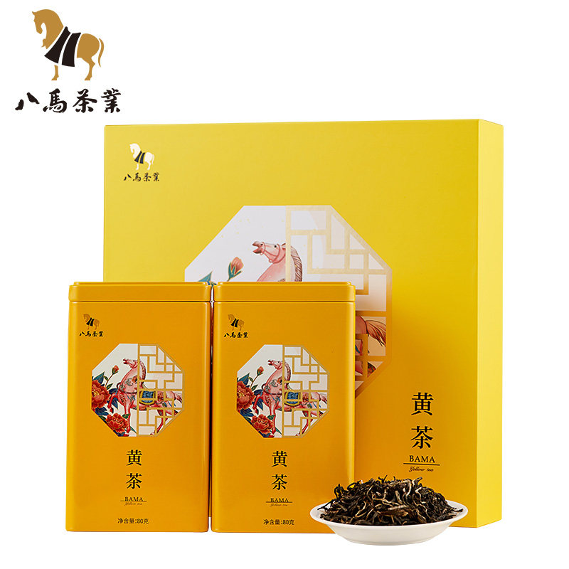 Eight Horses Tea New Pint Jun Shan Yellow Tea Tea Tea Tree Buds Leaves Hunan special Courtesy Kit 80g * 2 cans