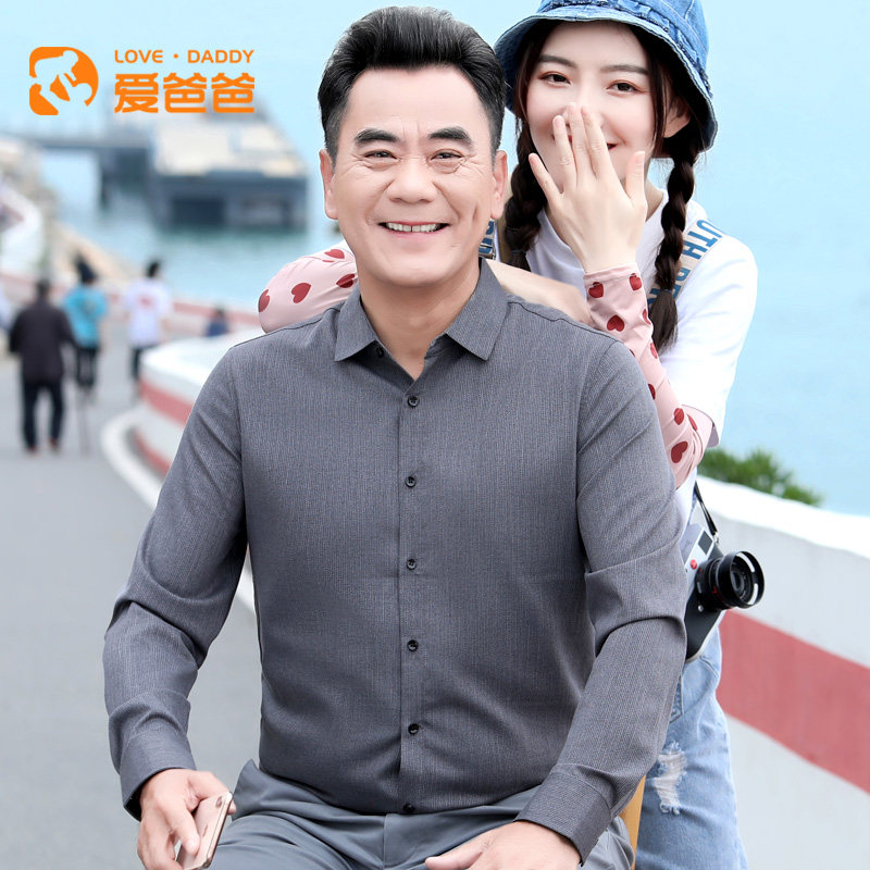 Love dad autumn new middle-aged dad shirt long sleeve middle-aged men long sleeve shirt thin autumn coat