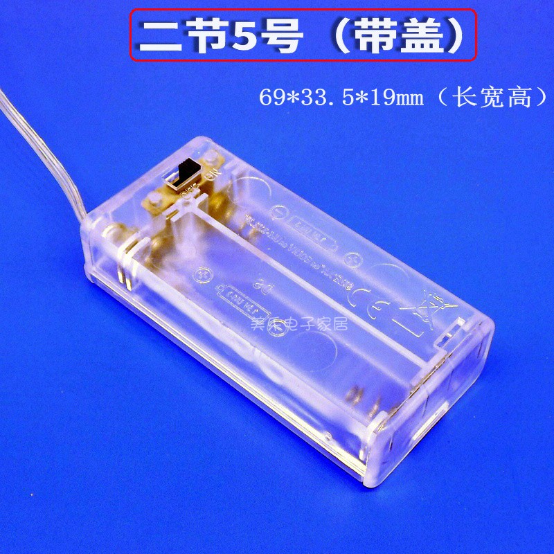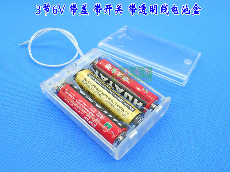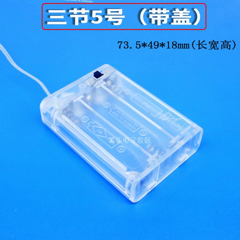 Fully enclosed 2-section 5th battery box, 3-section transparent belt switch with cover, crystal light-emitting toy LED3 6V power supply