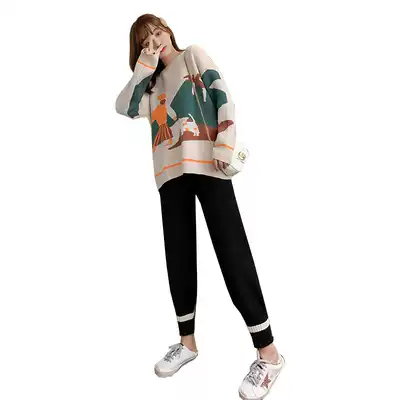 Pregnant women clothes autumn set spring and autumn 2021 new women's coat Net red style fashion early spring two-piece set