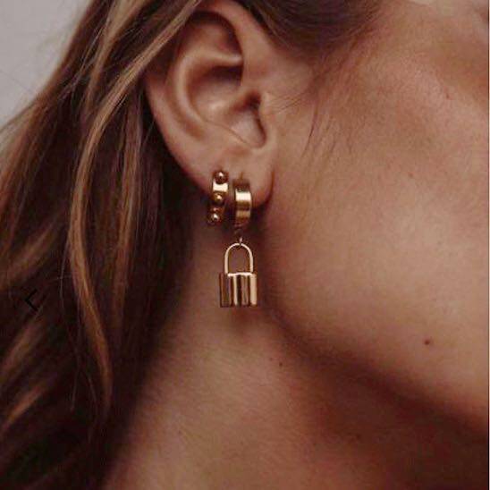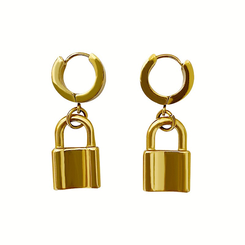 Not easy to fade European and American fashion street shooting blogger ins cold wind titanium steel 18K gold-plated metal key lock earrings