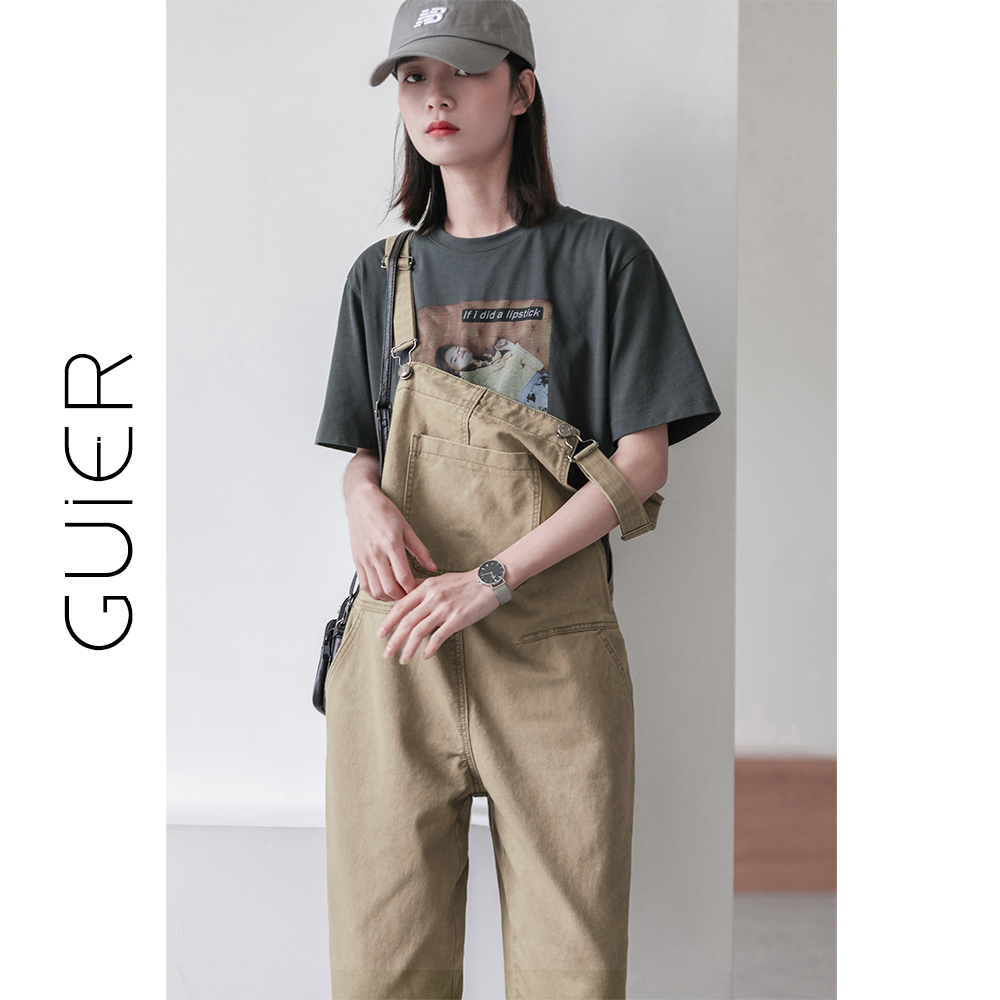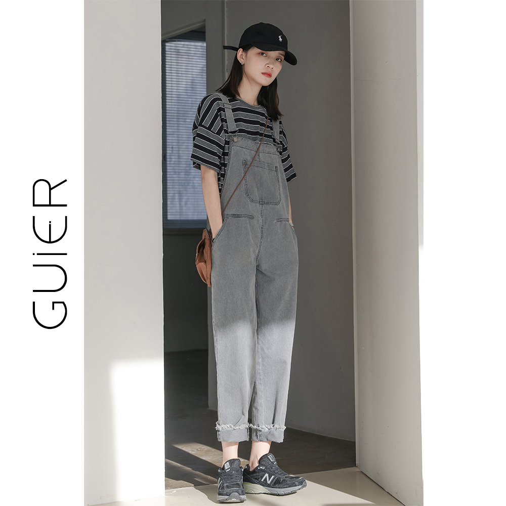 "GUIER"gray raw denim baby bag pants 2021 new fashion foreign school age reduction nine-point pants women's summer