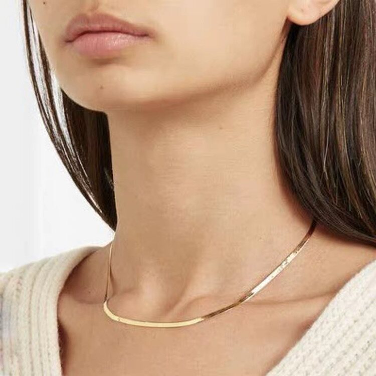 Golden double-layer extremely fine snake chain (40 5cm) Rose gold 35 5cm extended chain (single) Gold 2 3mm flat snake bone chain (40 5cm) white steel color width 2 3m