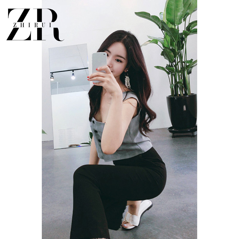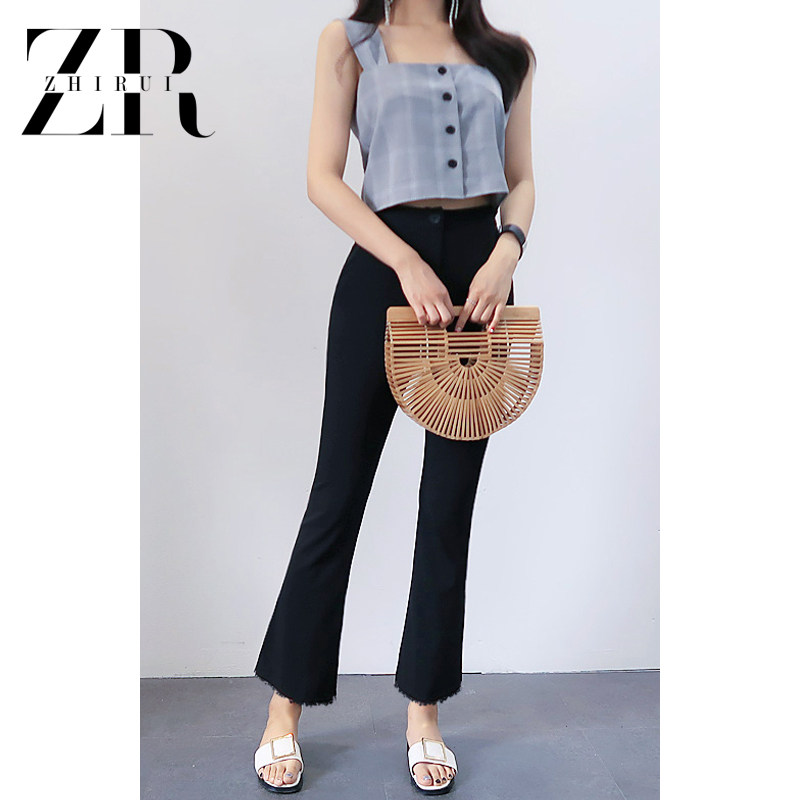 Black high-waisted denim flared pants women's summer burr micro-la nine-point pants Stretch thin Korean version of the small eight-point pants