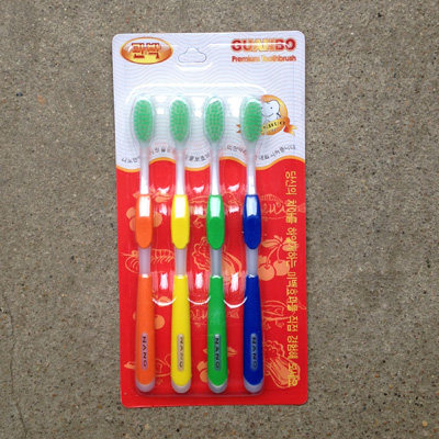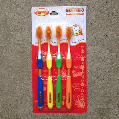4p Jade toothbrush (green bristles) 4p silver toothbrush (white bristles) 4p bamboo charcoal toothbrush (black bristles) 4p Gold toothbrush (black bristles) 4p Gold toothbrush (yellow bristles) 4p gold and silver Jade charcoal mix