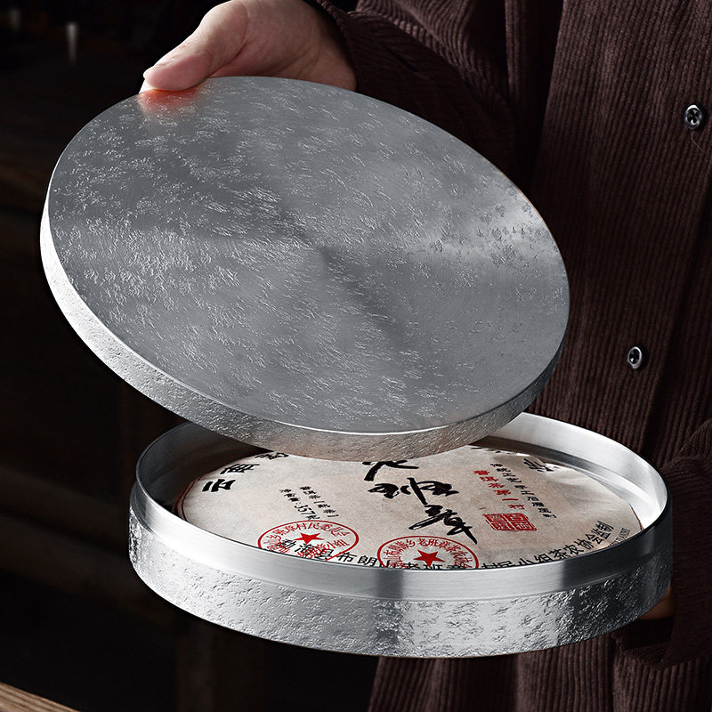 Tea Cake Containing Box Tea Cake Storage Tank Pu'er Jar Pure Tin Size Tea Cake Tea Leaf Jar Tin Jar White Tea Seal Tank