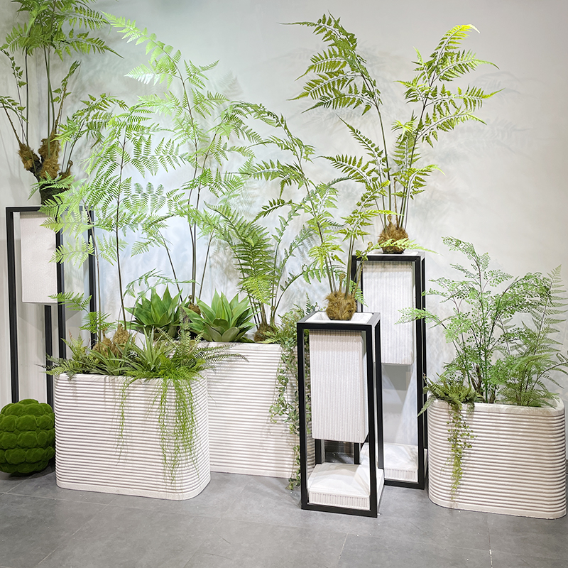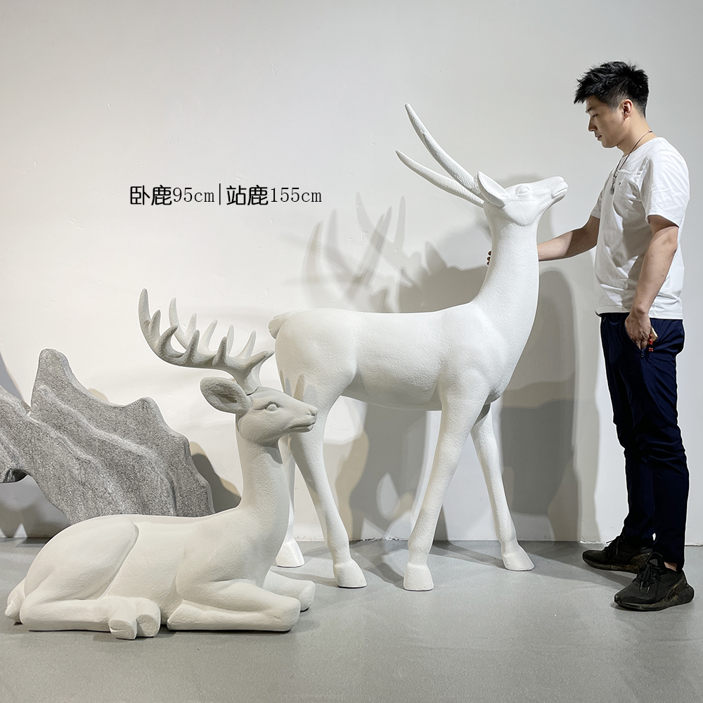 Glass Fiber Sculpture White Sand Quartet Egg Flower Horse Head Deer Sculpture Modern Green Plant Combination Decoration