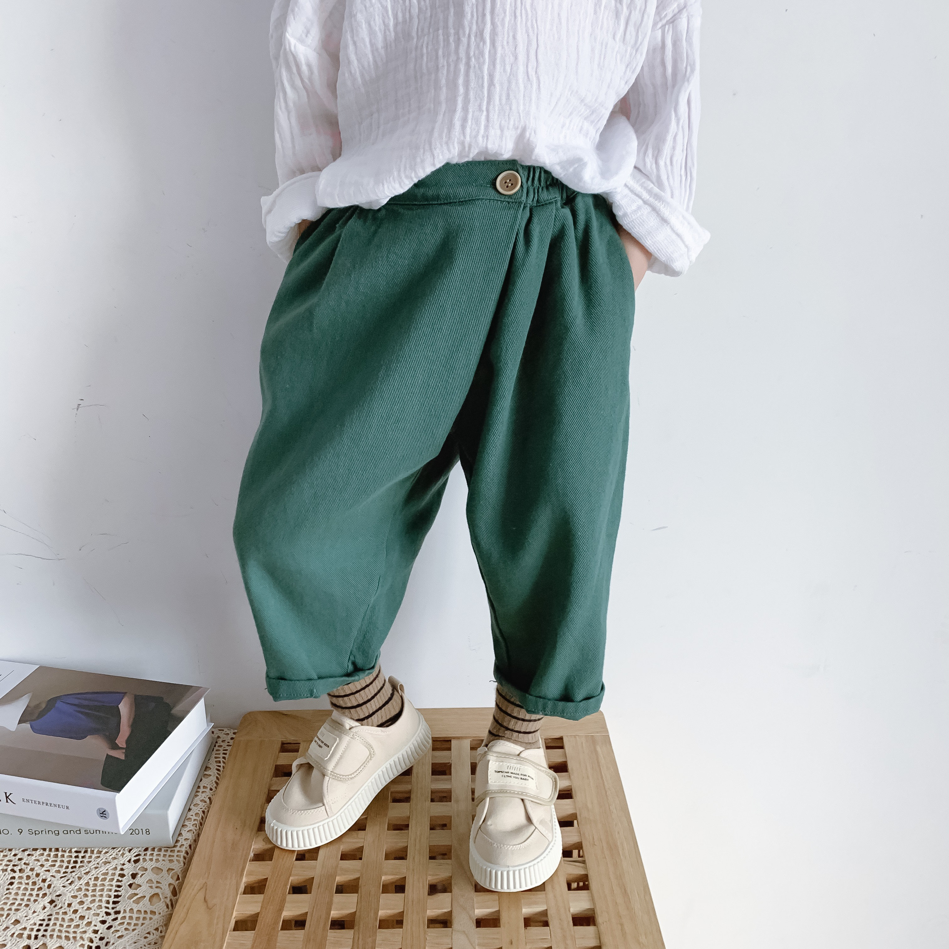 Bean Bag Monarch 22 Chunqiu Men and women Children's Han version Twill Wash Water Cotton Partial Flap Personality Design 100 Hitch Casual Long Pants Tide