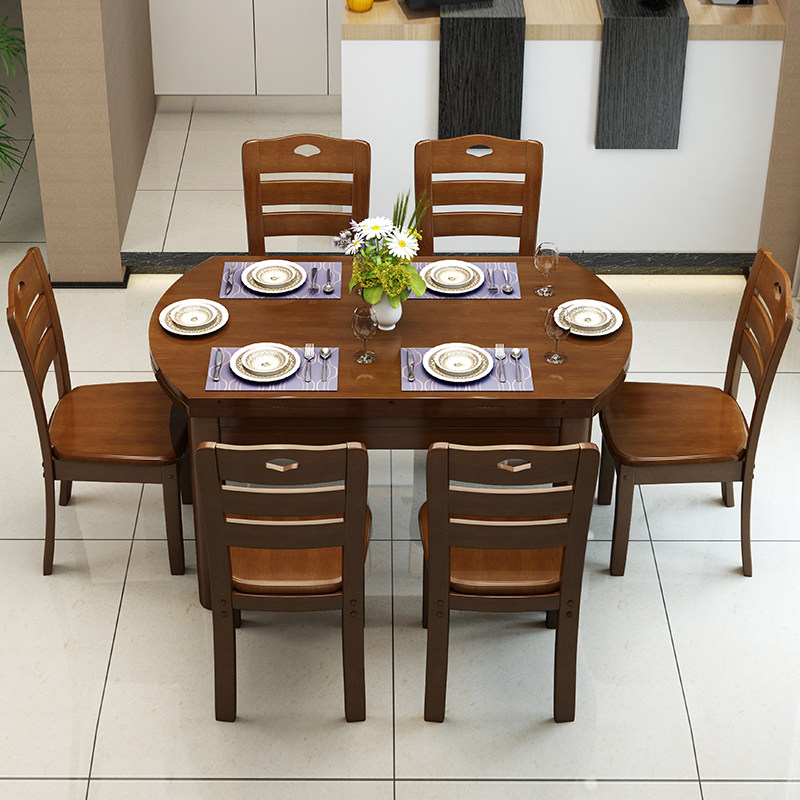 All solid wood dining table and chair combination modern minimalist Chinese style folding retractable dual-use round small apartment dining table home
