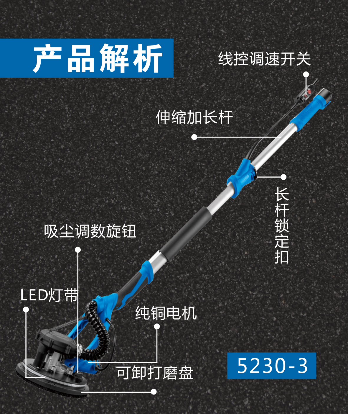 5230-3 long rod wall grinder simple governor rotor stator self-priming cover dust collection tube 2 meters brush floppy disk