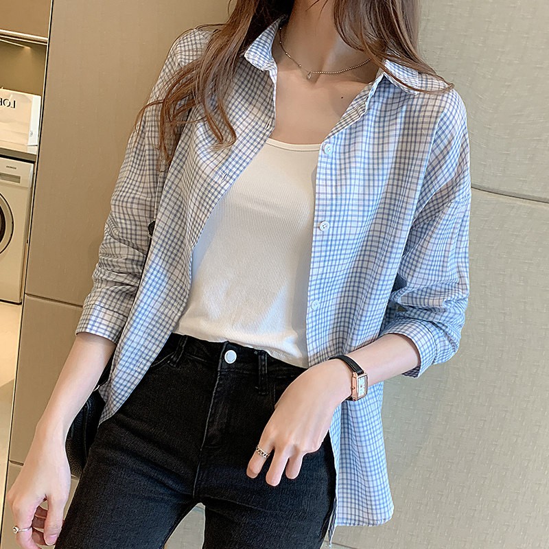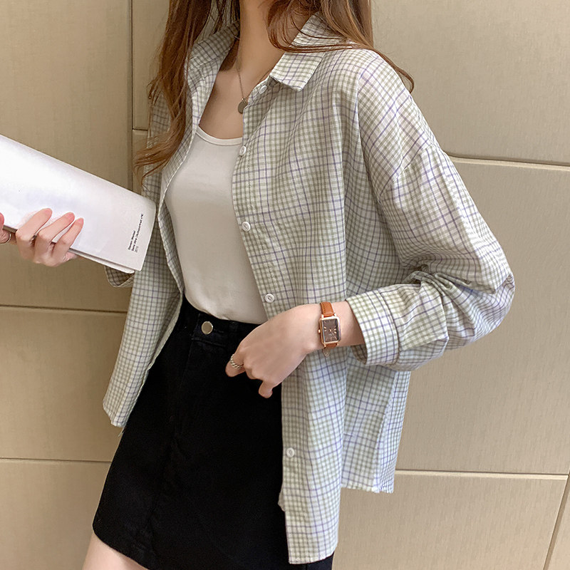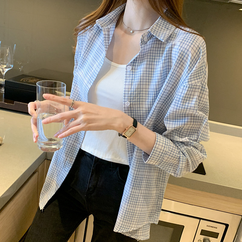 2021 spring and autumn collection new Korean version retro Hong Kong long sleeve small plaid shirt thin coat two-piece women