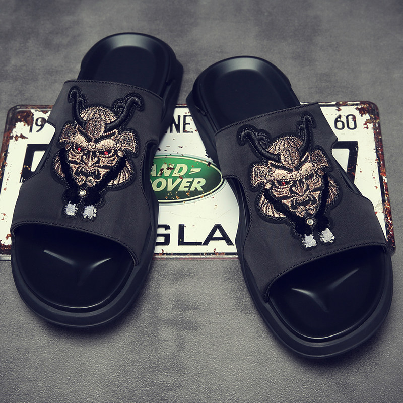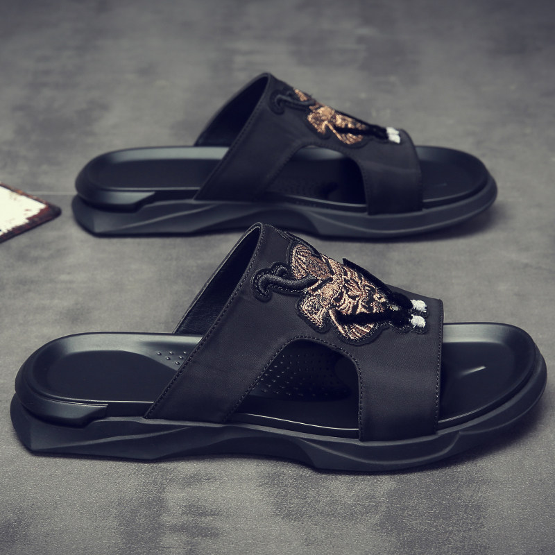 Slippers men wear summer new fashion personality anti-slip anti-odor soft bottom wear-resistant high-grade leather word cold drag man