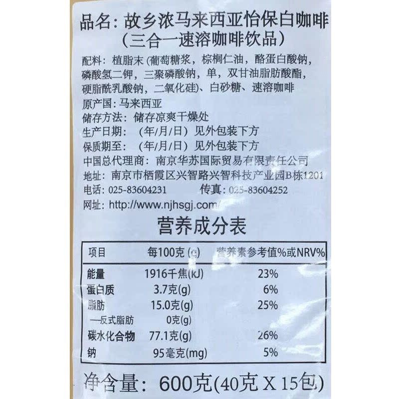 Malaysia imported Ipoh hometown strong original white coffee instant three-in-one coffee powder 600g