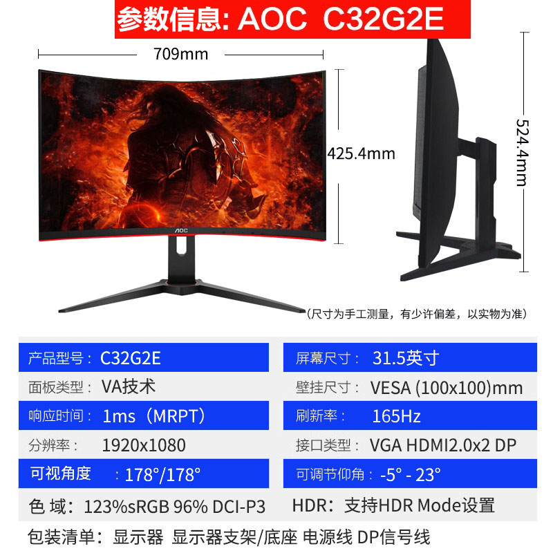 AOC C32G2E 32-inch monitor 165hz 1ms game eating chicken gaming HD desktop computer display