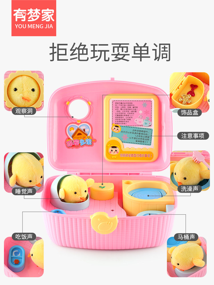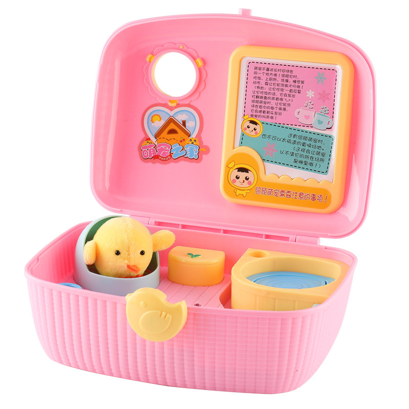 Happy cute chick growing house pet little girl over home girl birthday present sub princess children's toys