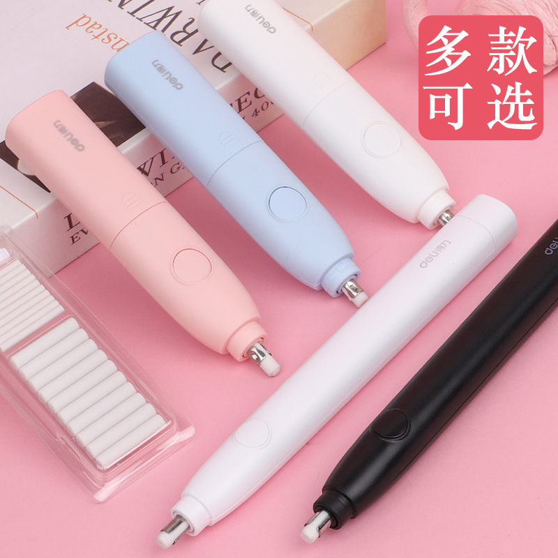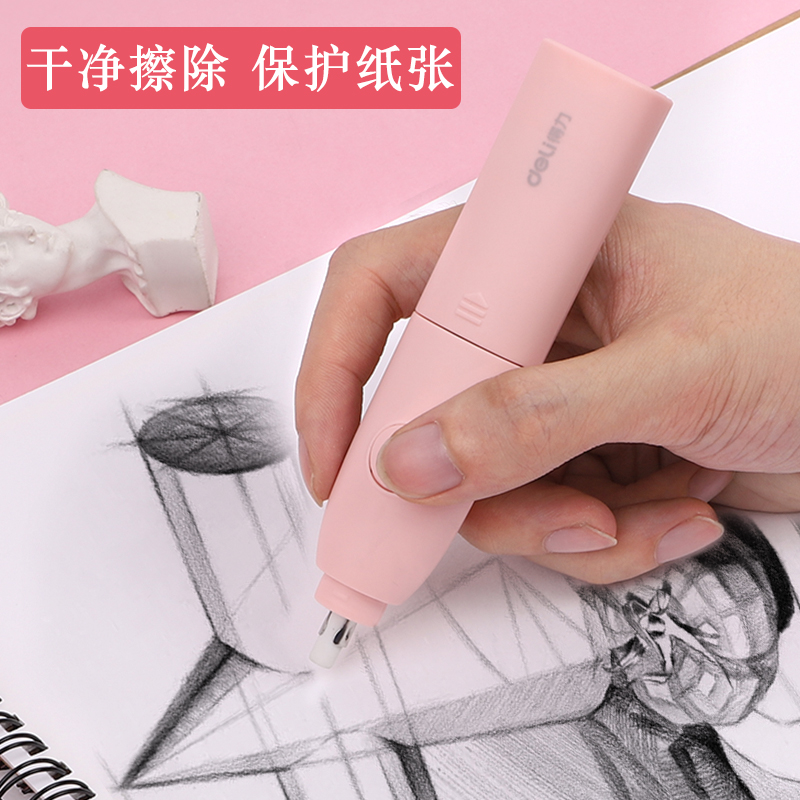 Deli electric eraser Vacuum cleaner for children and primary school students special automatic art sketch pencil wipe crumbs-free three-piece creative cartoon cute high-gloss leather stationery set School supplies